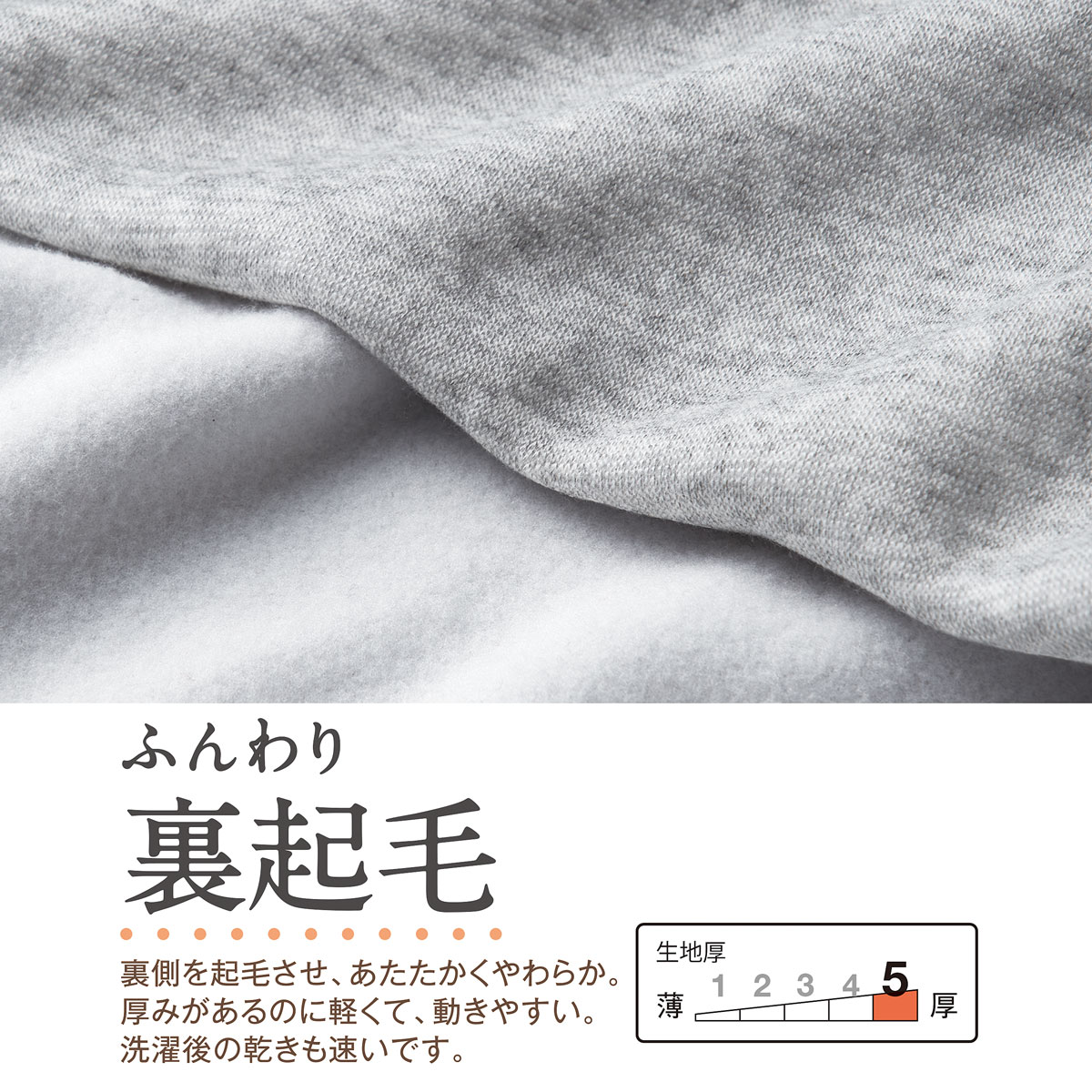 グレー (1)衿はリブ仕様で冷気を通しにくい(2)裾はサイドスリット入り