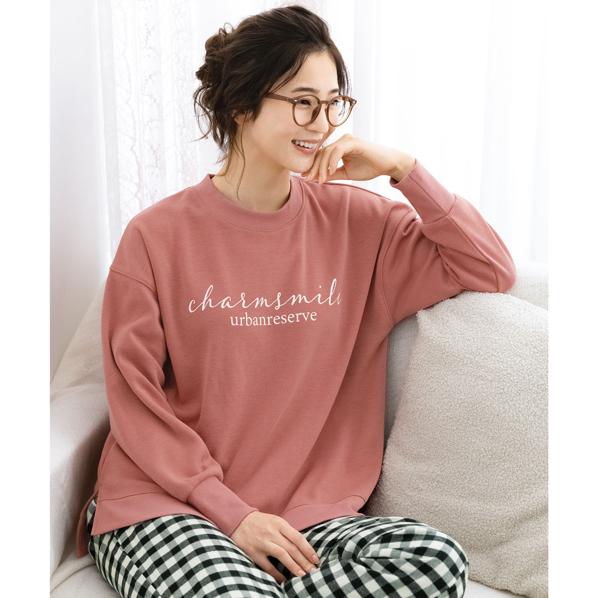 • シャギー裏起毛のロゴ入りプルオーバー | コーラルサンド