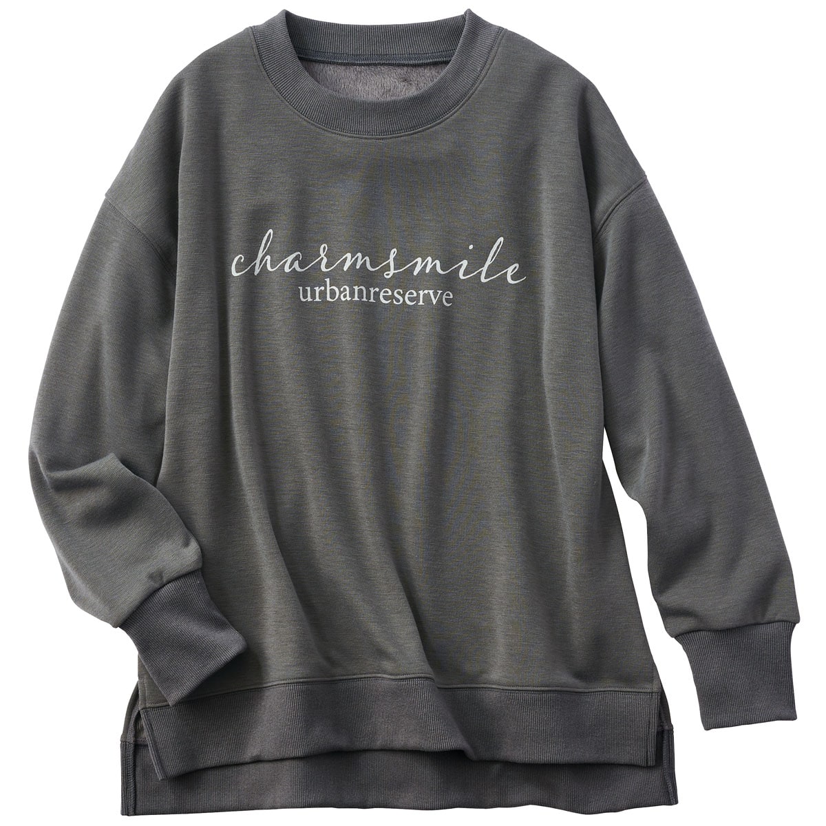 • シャギー裏起毛のロゴ入りプルオーバー | チャコールグレー