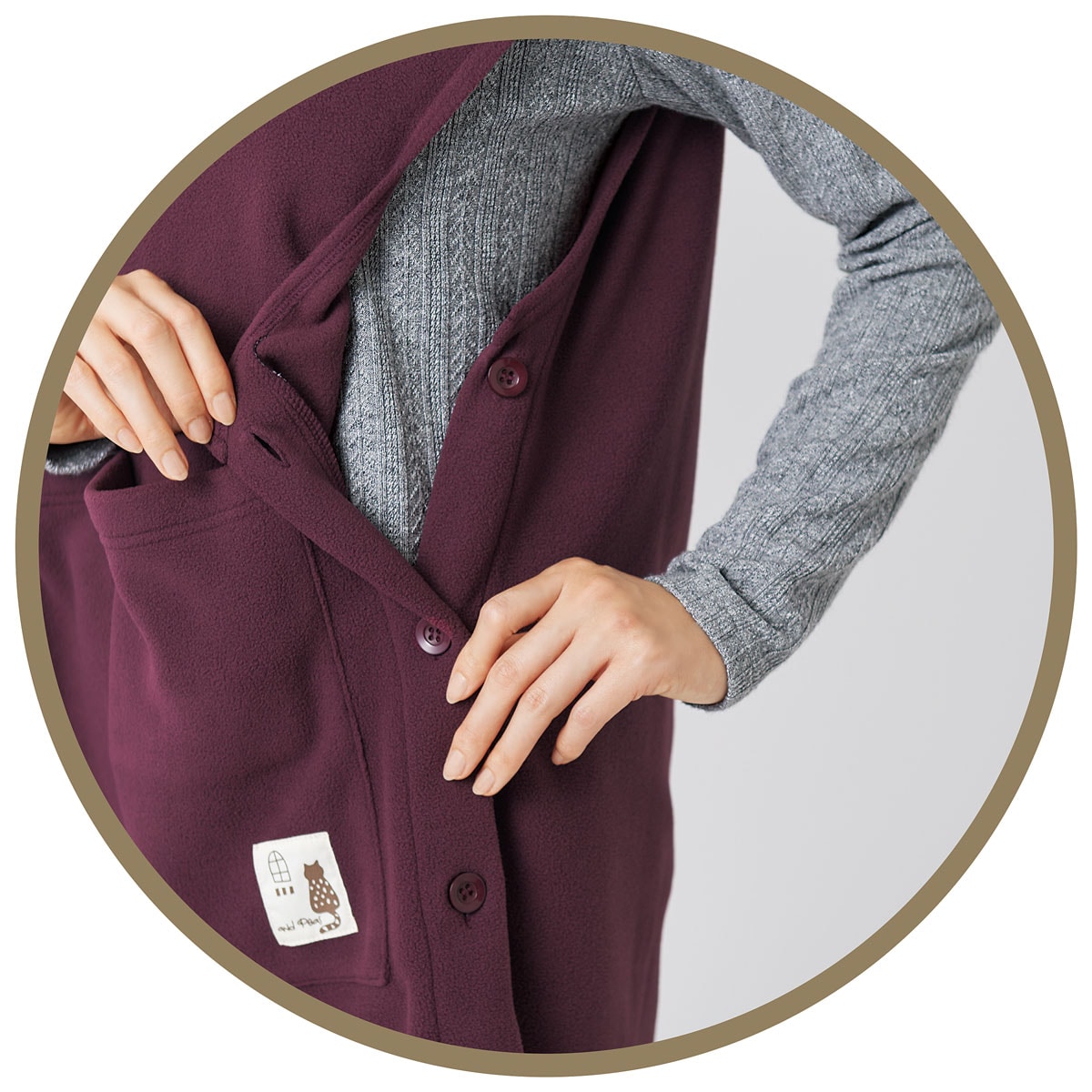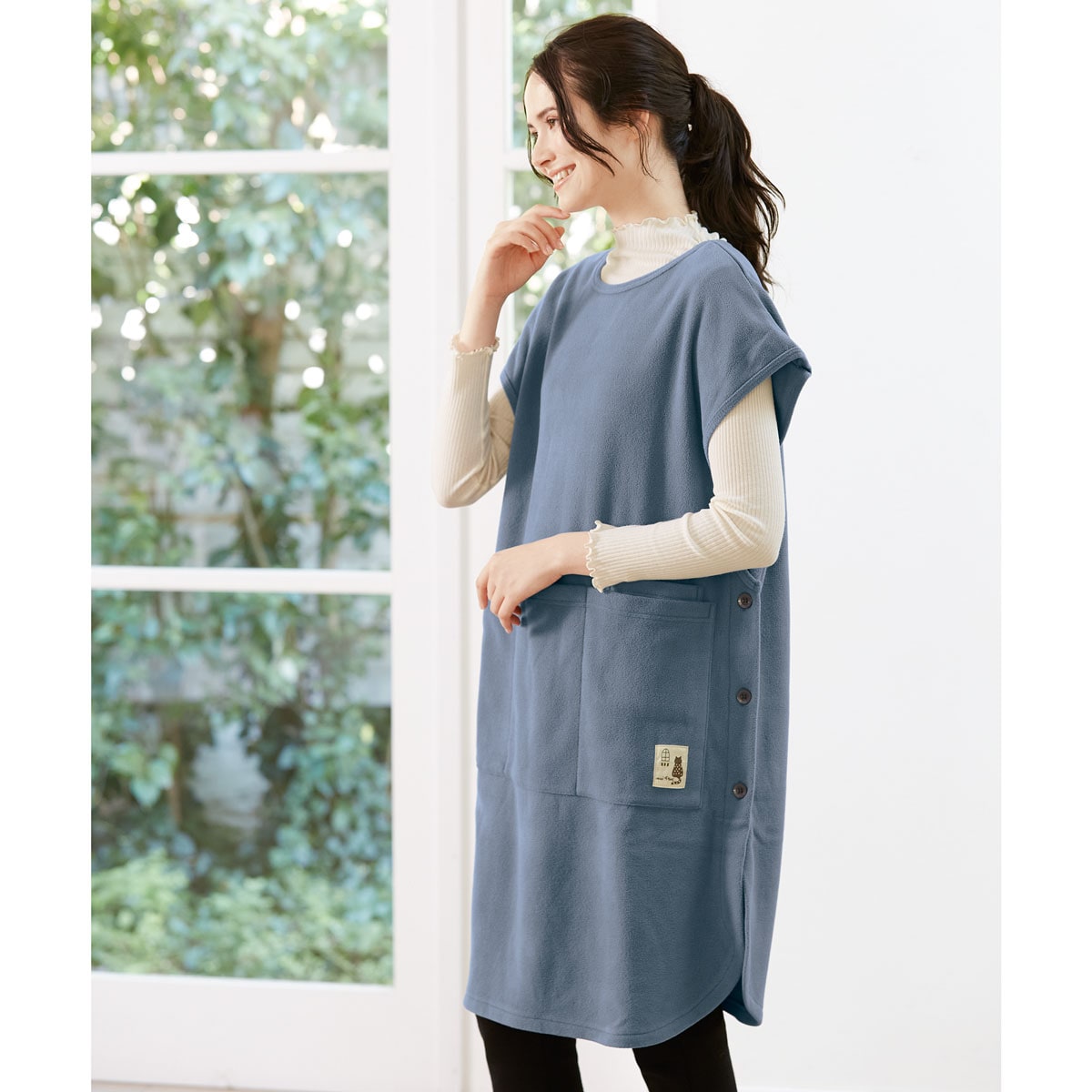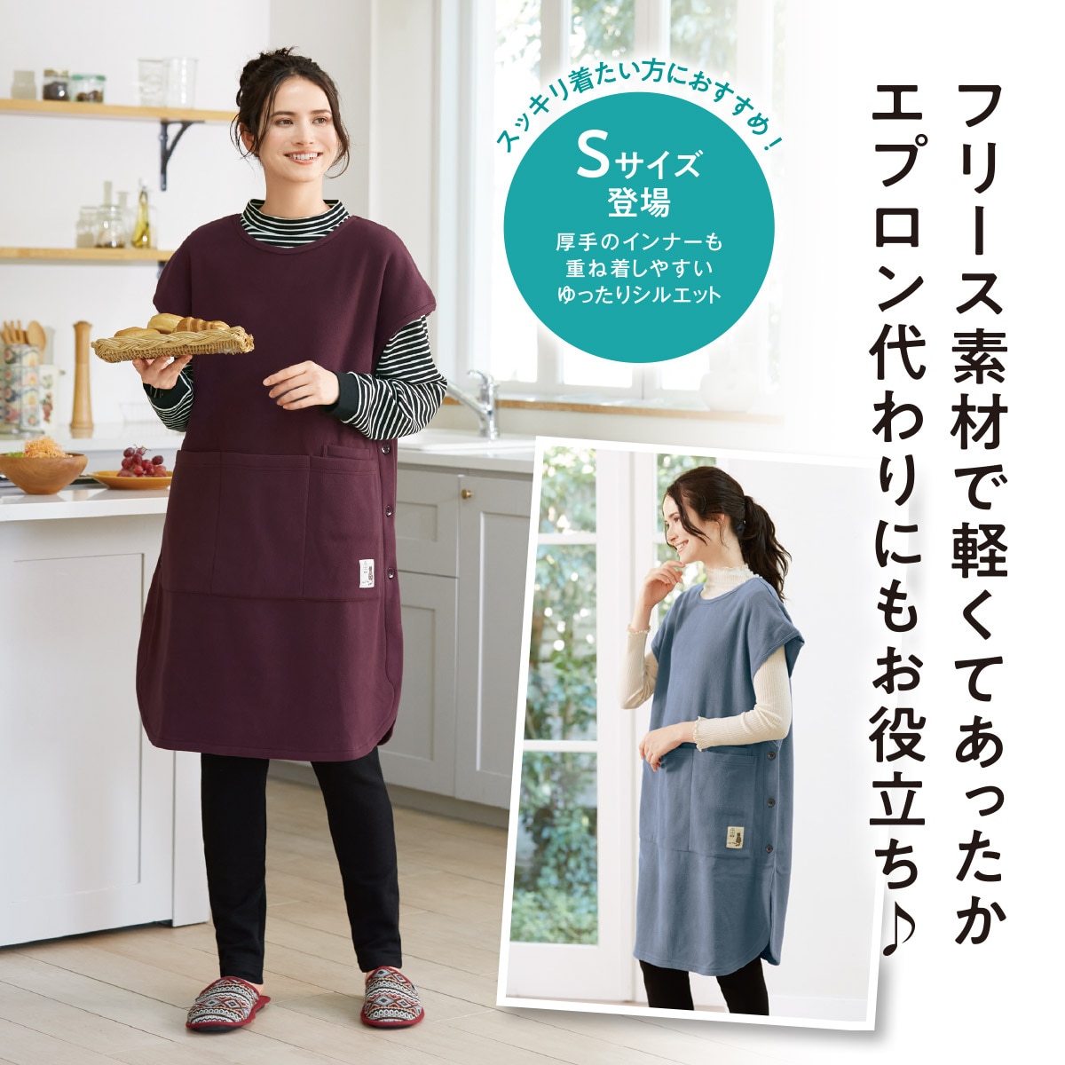 着るだけでらくちん&かわいいお家スタイルが完成♪軽くてあったかのフリース素材のエプロンチュニック。エプロン代わりにもお役立ち。ふっくらさん対応サイズplump(プランプ)もあります。