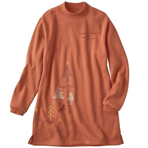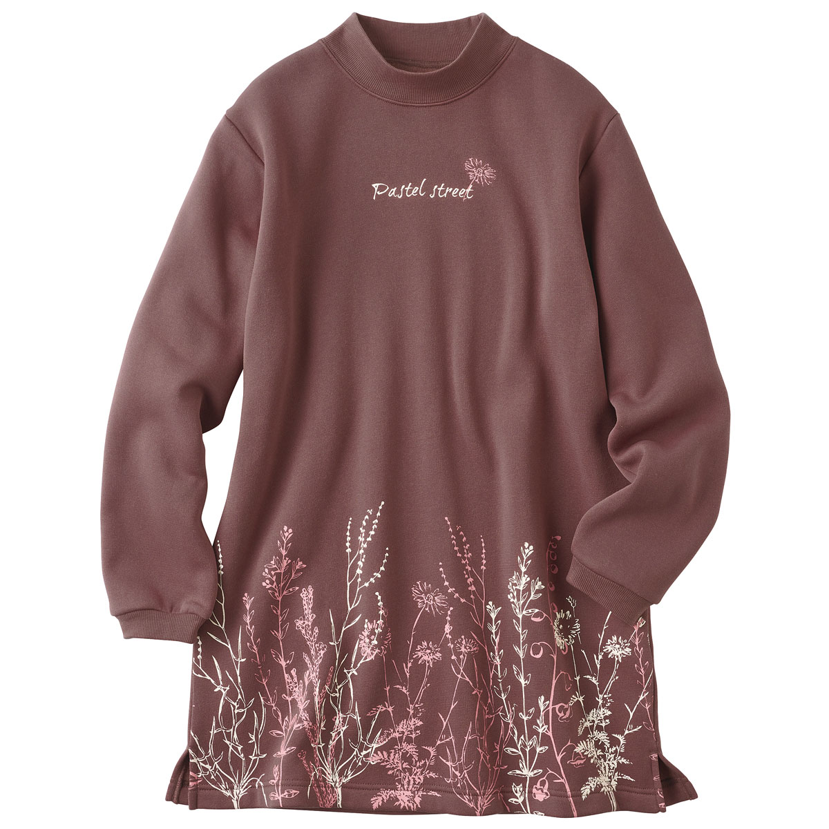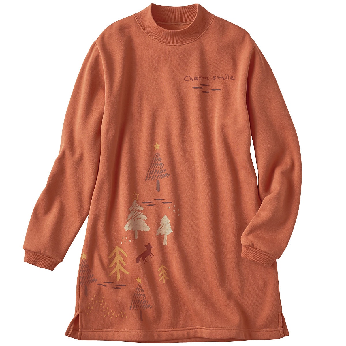 トレーナー感覚でさらっと着られてあたたかい、ふんわり裏起毛のハイネックチュニック。肌ざわりのいい綿混素材で、厚みがあるのに軽い着心地。ハイネック&長め丈で首まわりからヒップまで包んで、ぬくもりも体型カバーも叶います。衿・袖リブ仕様で冷気もシャットアウト。洗濯後に乾きやすいから、寒い日のデイリーウェアとして活躍します。可愛いプリント柄のバリエーションは色違いで揃えてもグッド。大きいサイズも展開(M~5L)