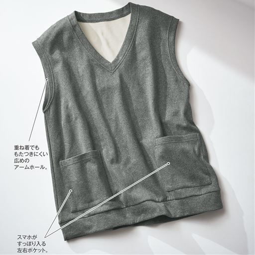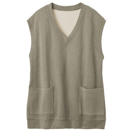 両面起毛のもちもちとした肌触りが気持ちいい、体温調整も便利なゆったりベスト。(ルームウェア)