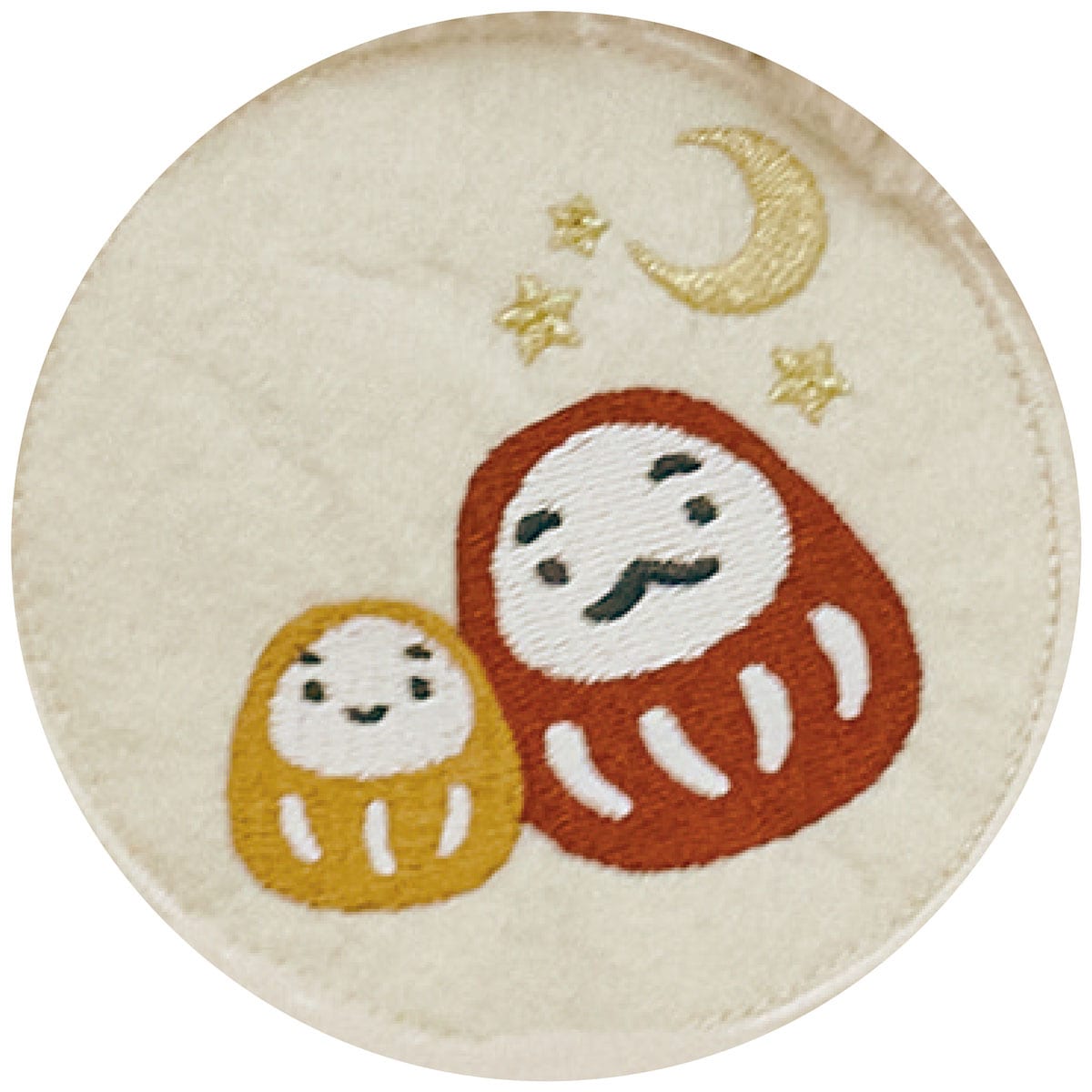 部分拡大フェルトワッペンにだるま柄刺繍を施しました。