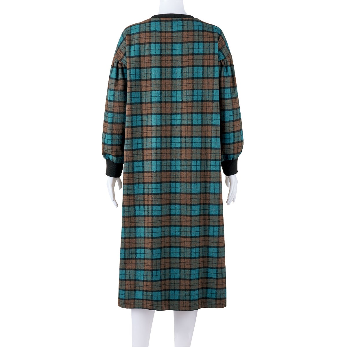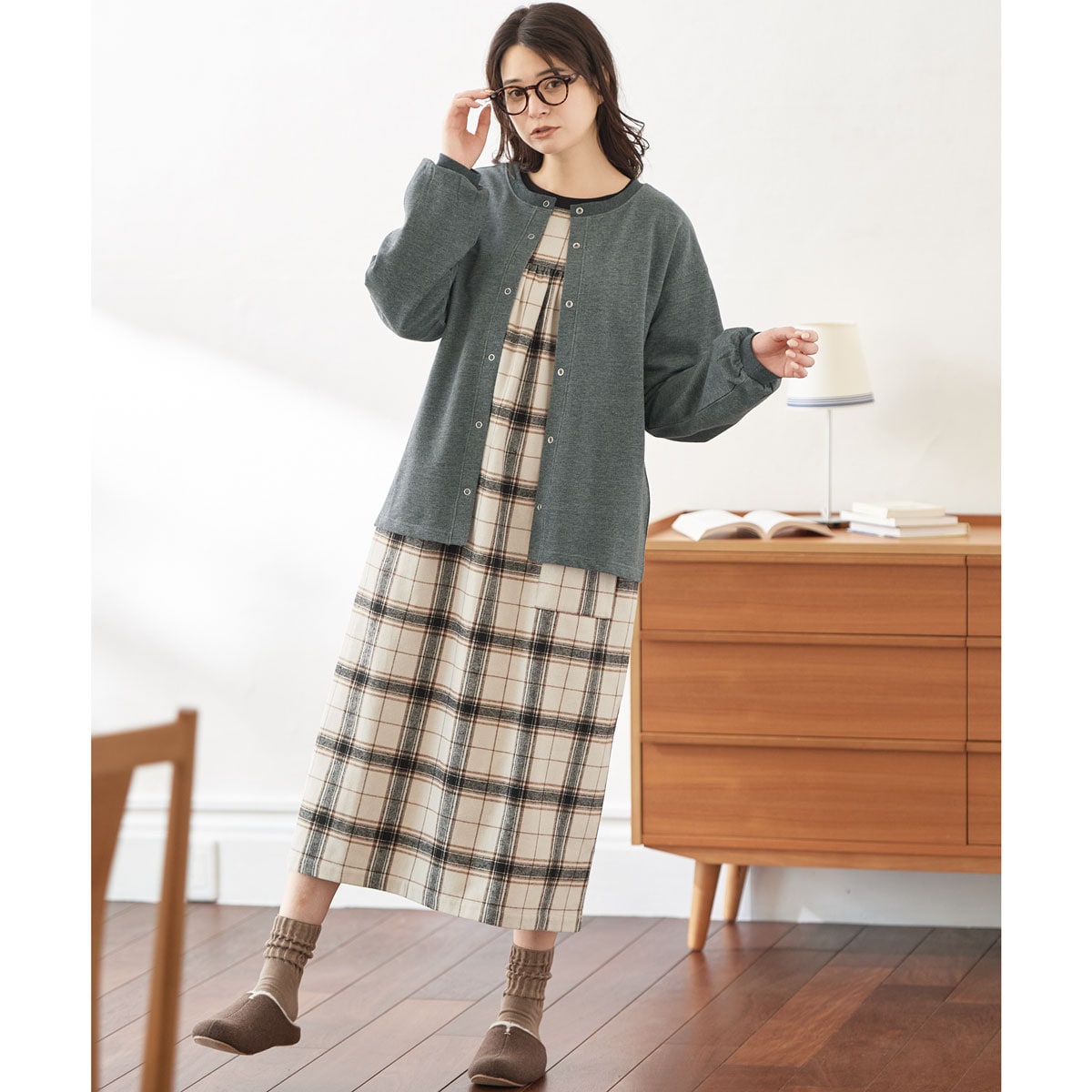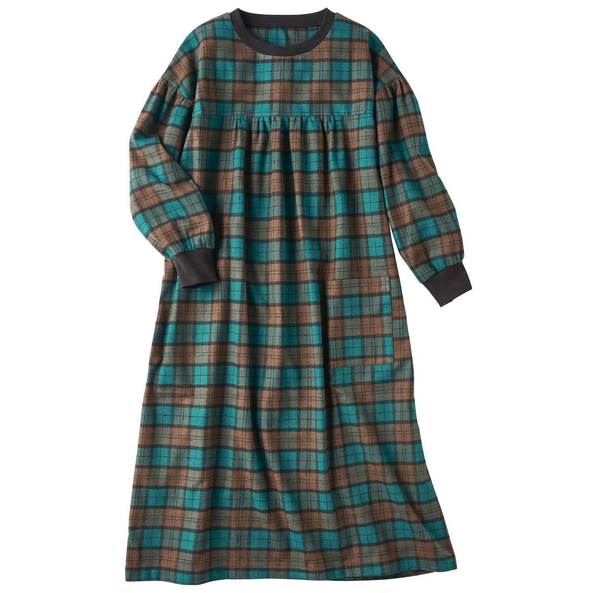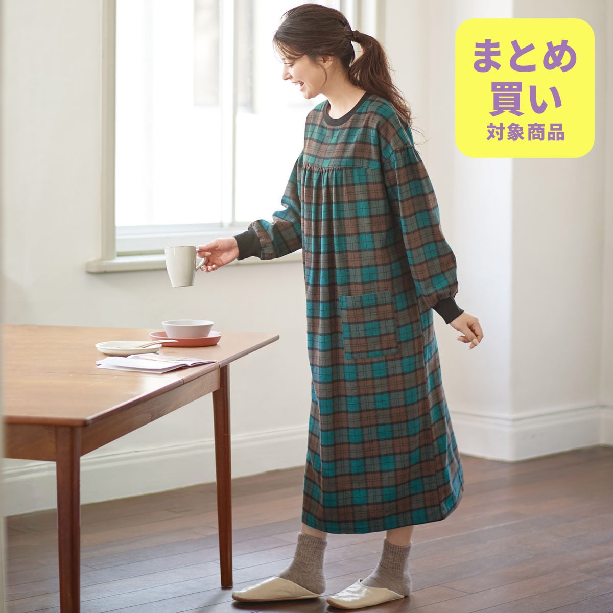 -ポイント-お家でも自分好みのスタイルに。何も考えずにスポンとかぶればラク可愛くてご機嫌な一日に。-デザイン-・衿はリブ仕様で着脱がラク・胸元や袖のギャザーがふんわりかわいい・たくし上げやすく、家事にも便利な袖口リブ仕様・大きめポケットが便利・冬らしいほっこりしたチェック柄-素材特徴-両面起毛でふんわりぬくもり感のある肌触りとハリコシのある素材感を両立。ポリエステル混でシワが気になりにくく、扱いやすい◎廃棄される繊維を再利用した環境にやさしい素材です。