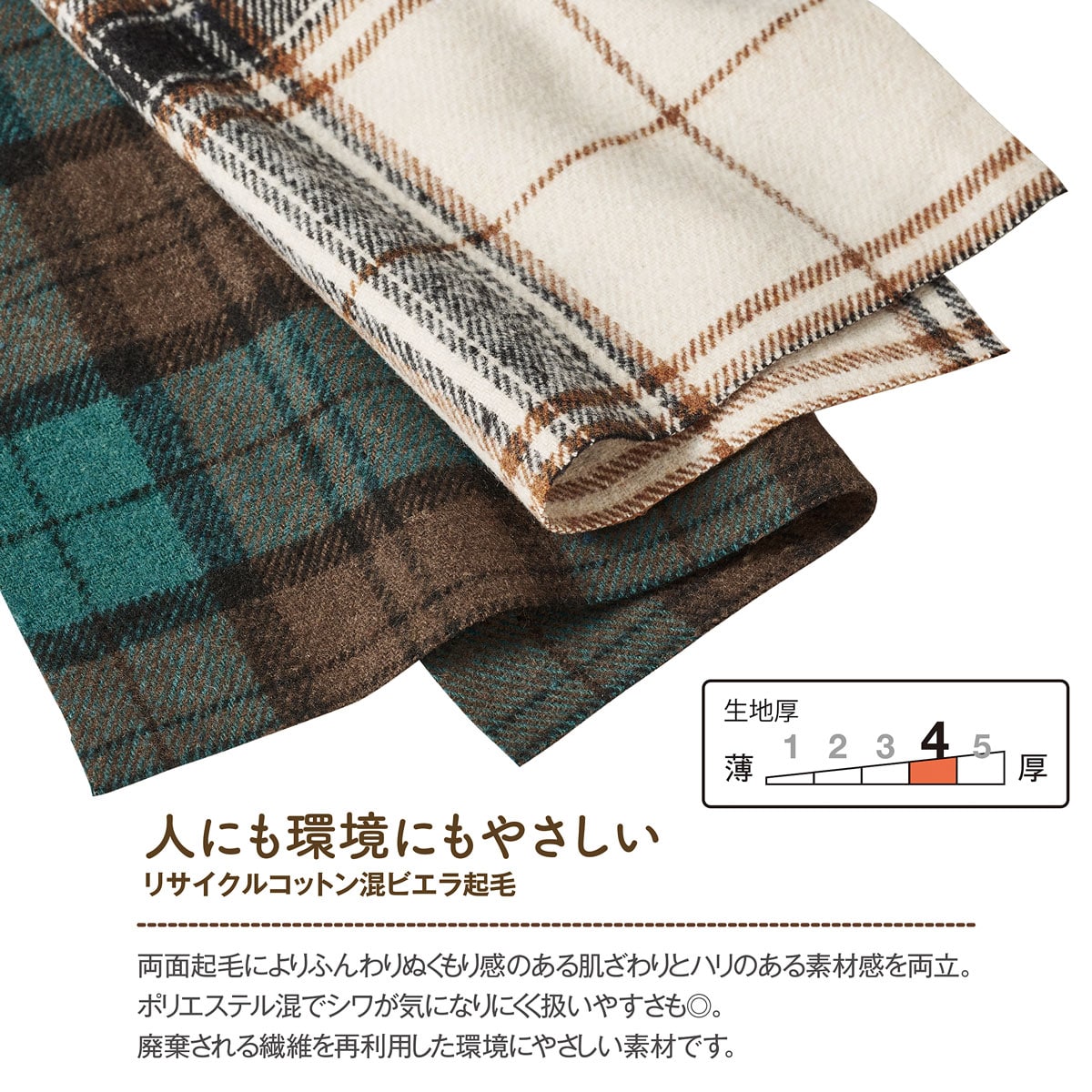 ■[織物]ポリエステル65%綿20%(リサイクルコットン100%使用)その他15% (リサイクルビエラ)※リサイクル素材を使用しているため、使用するリサイクル素材によって素材の混率が若干異なる場合があります▼リサイクルコットンの特性上、生地にネップが含まれることがあります▼柄の位置は異なります●左前ポケット●中国製【綿混】 【大きいサイズも展開】(M~5L)【生地厚指数2】