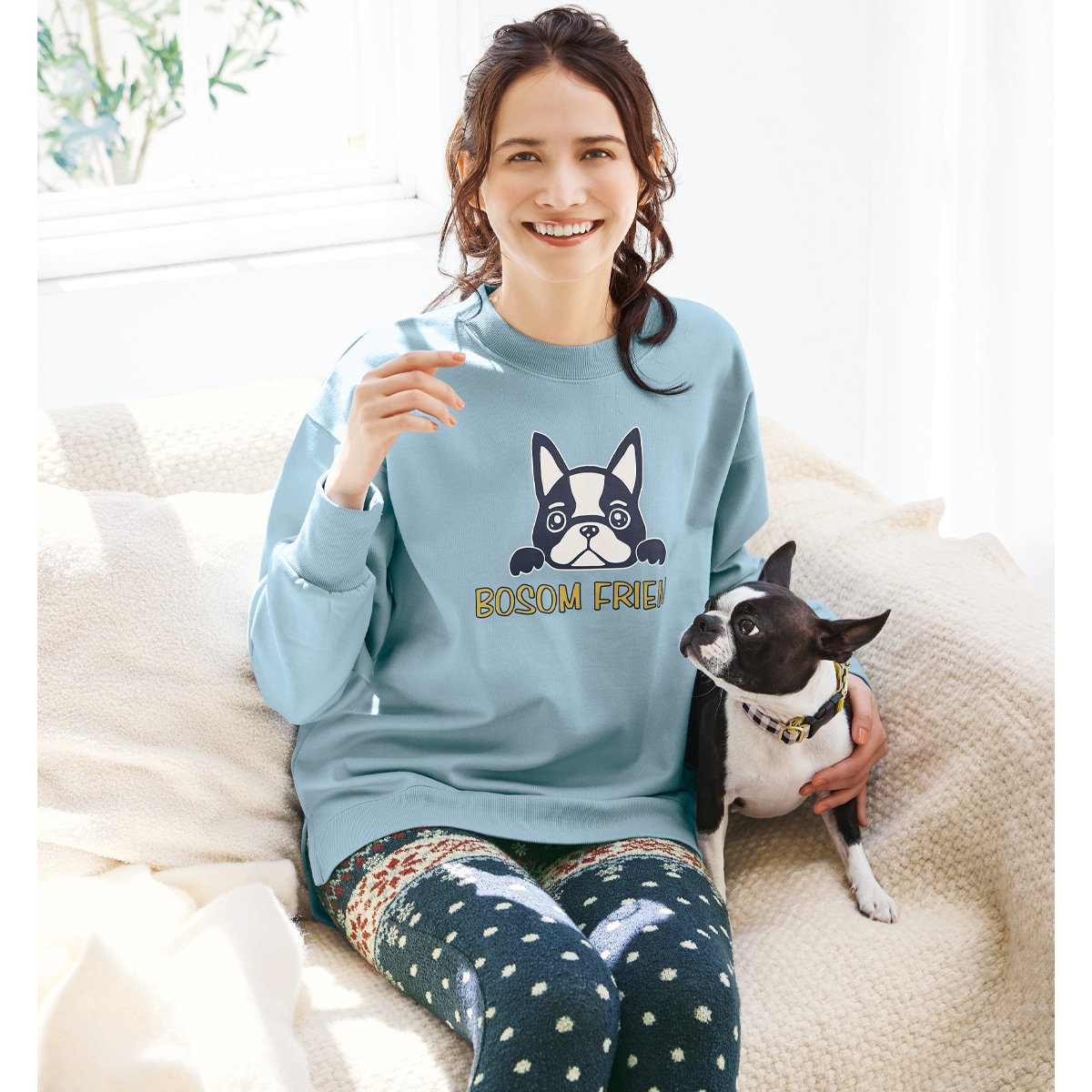 ふんわり、軽やかな裏起毛のプルオーバー。1枚であたたかな着心地で、パジャマにも普段着にもぴったり。かわいいプリント柄でときめきを♪ふっくらさん対応サイズplump(プランプ)もあります。