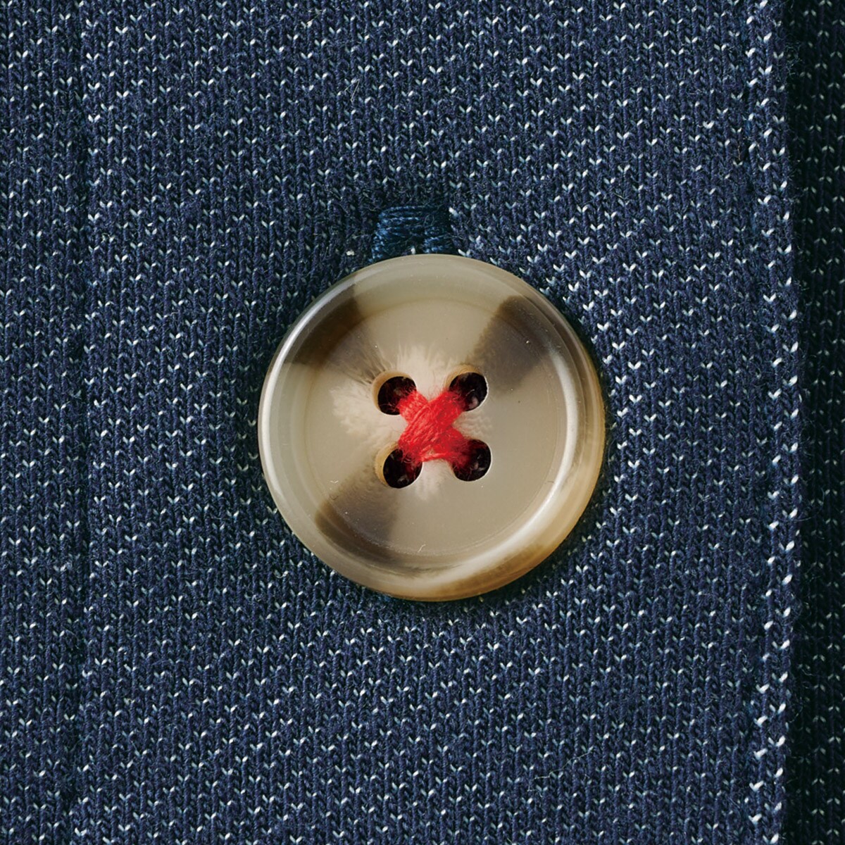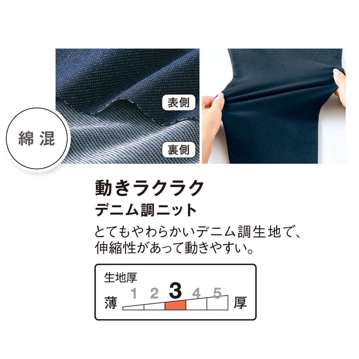 ■本体=〔ニット〕綿70%ポリエステル25%ポリウレタン5%(デニムニット)●左前ポケットワッペン付●中国製【大きいサイズも展開】(M~5L)【生地厚指数3】