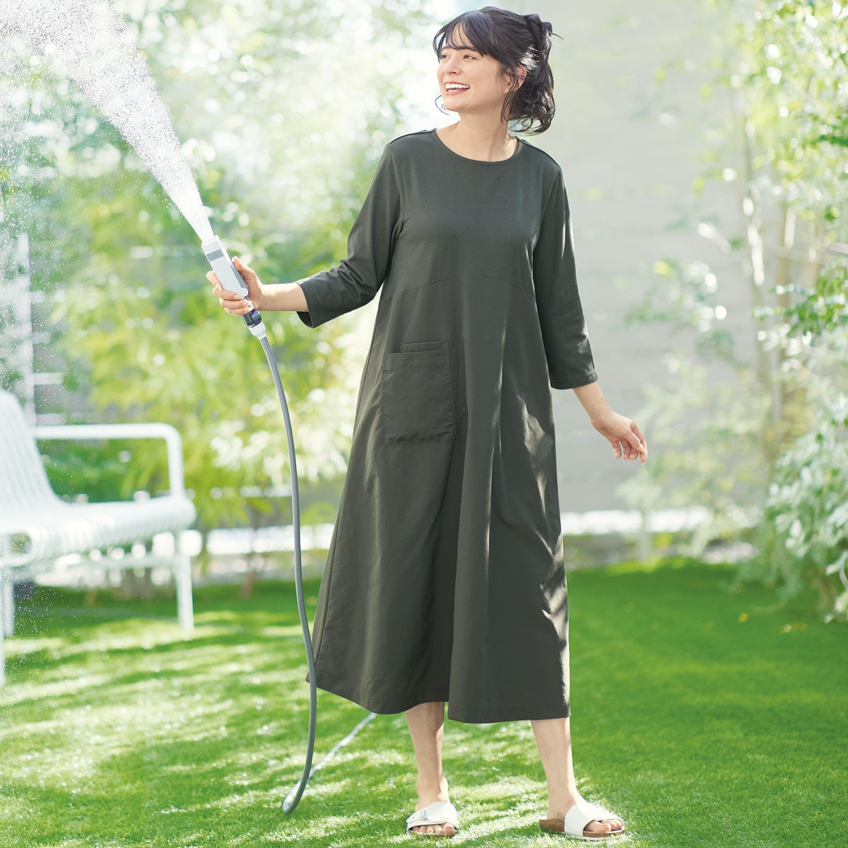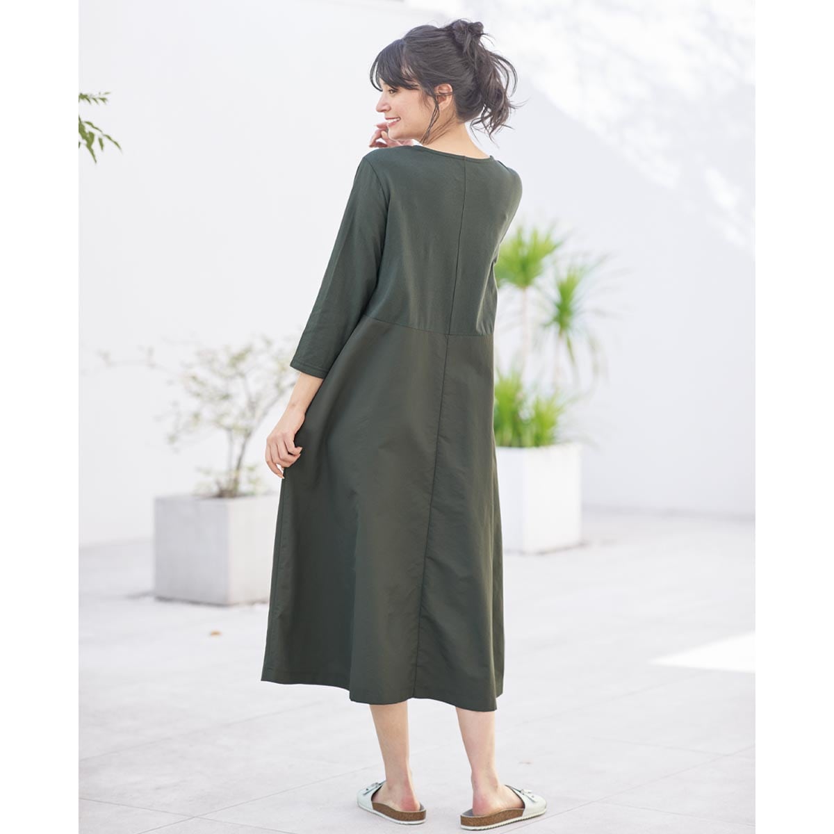 水仕事もOKな異素材使いのルームワンピ