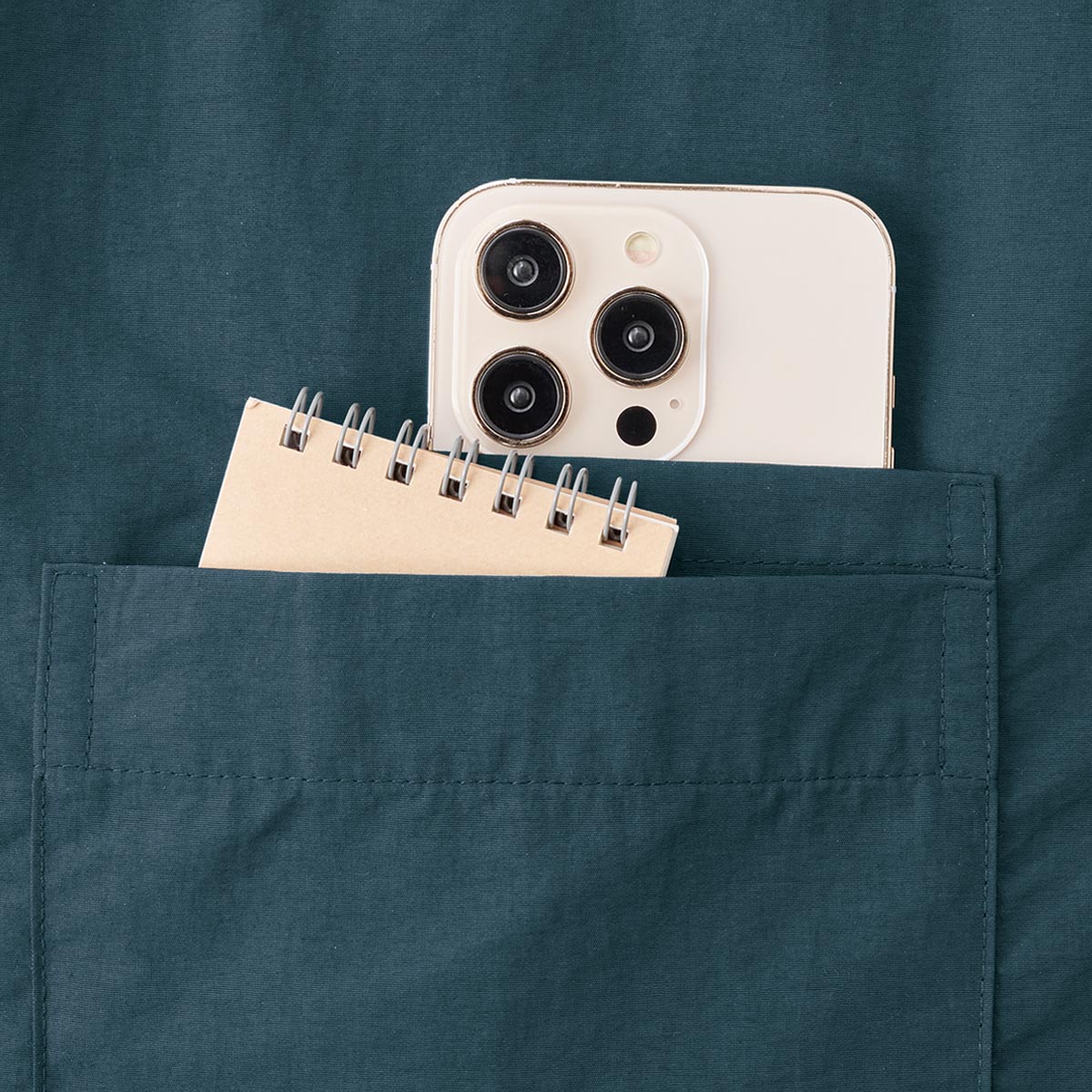 スマホが入る二重ポケット付きで便利。