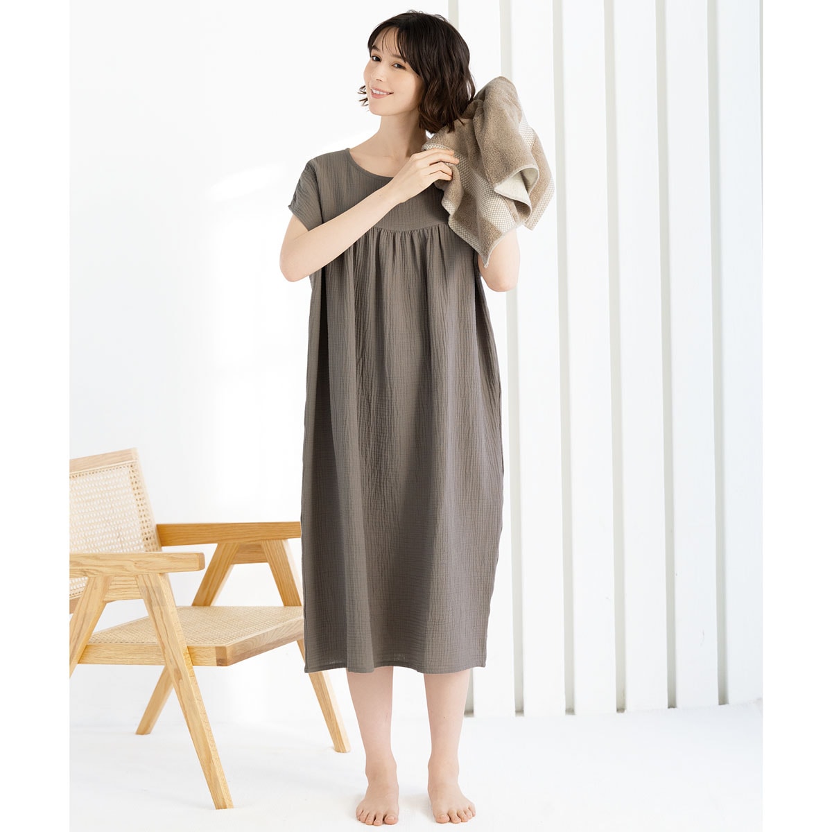 楊柳ガーゼの湯上りワンピース