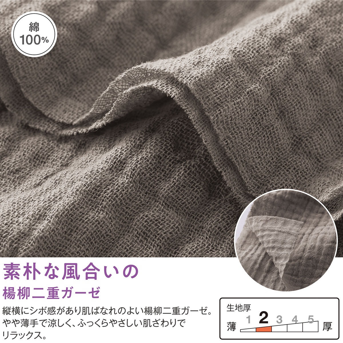 ■〔織物〕綿100%(楊柳二重ガーゼ)●中国製【綿100%】 【大きいサイズも展開】(M~3L)【生地厚指数2】