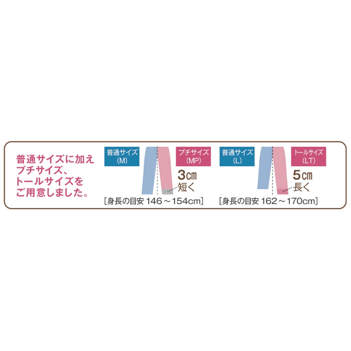 なめらかな綿100%スムース素材で、さらりときれいにはける人気の定番レディースパンツです。股上深めだからはき心地もゆったり、ルームウェアから、ちょっとそこまでのおでかけにも重宝します。サイズ展開も幅広く、S~6Lの大きいサイズまであります。Mサイズの幅はそのまま、股下丈を-3cmしたMPサイズ、Lサイズの幅はそのまま、股下丈を+5cmしたLTサイズもあります。