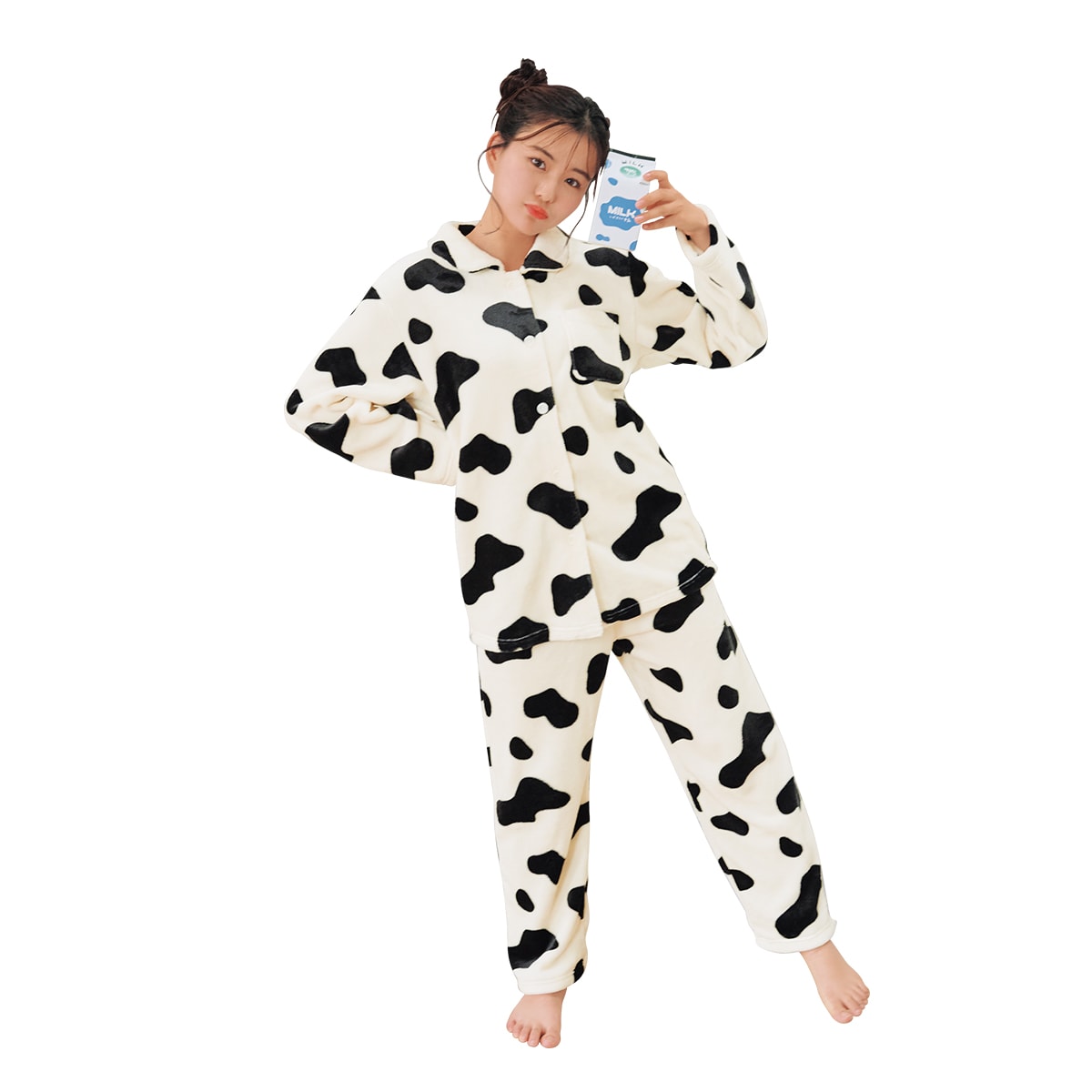 かわいいウシ柄のパジャマお友達とおソロにするのもおススメ◎!もこもこ素材だから寒い季節もこれで乗り切れちゃう♪