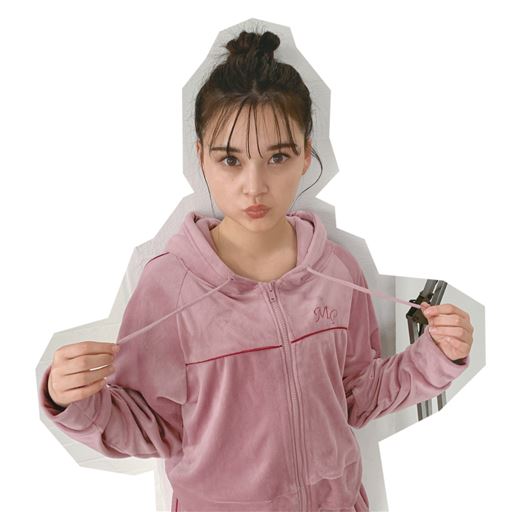 今流行りのベロア生地とY2Kっぽいデザインのパーカー。ルームウェアとしてだけでなく、ちょっとそこまでの外出でも使えるから実用性抜群◎友達と色違いのペアで着るのもおススメ!