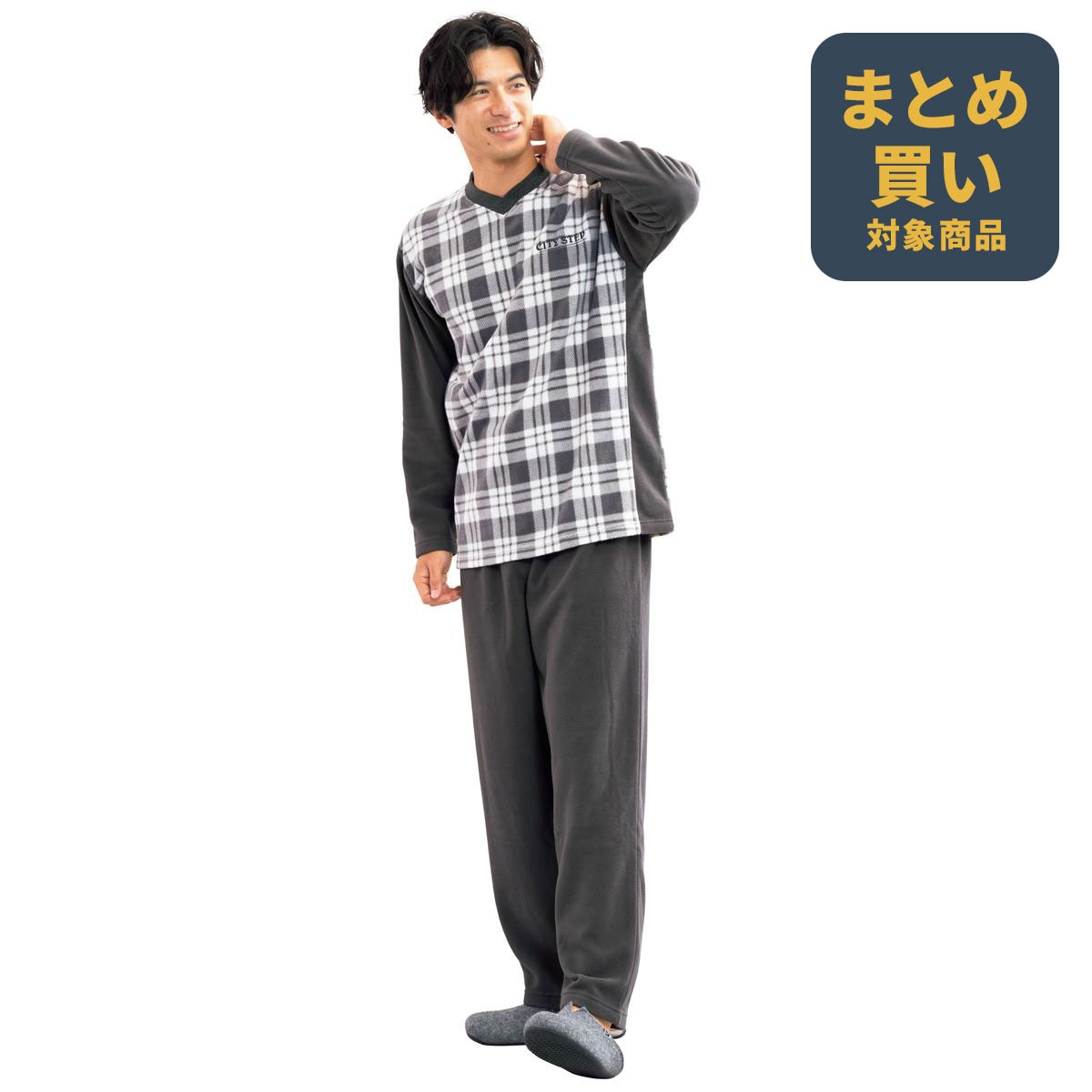 -お買い得ポイント-ふわふわのフリース素材を、シンプルな2トーンのセットアップに仕立てた部屋着。とろみのある柔らかな素材感は、一度着ると手放せなくなります。-デザイン-胸元のワンポイントロゴもポイント。首元がやや開いたVネックは着脱しやすく、圧迫感が少ないのでリラックスして眠れそう。-素材特徴-あったかいのに、スウェットよりも軽いのがフリースの良さ。分厚い綿素材に比べて乾きが速いのも寒い季節にはうれしいポイント。