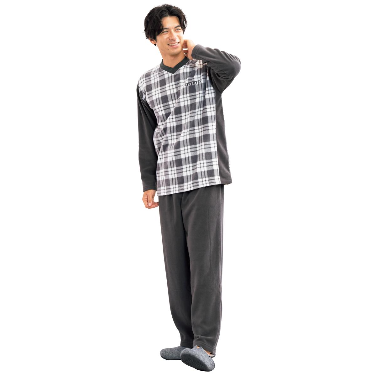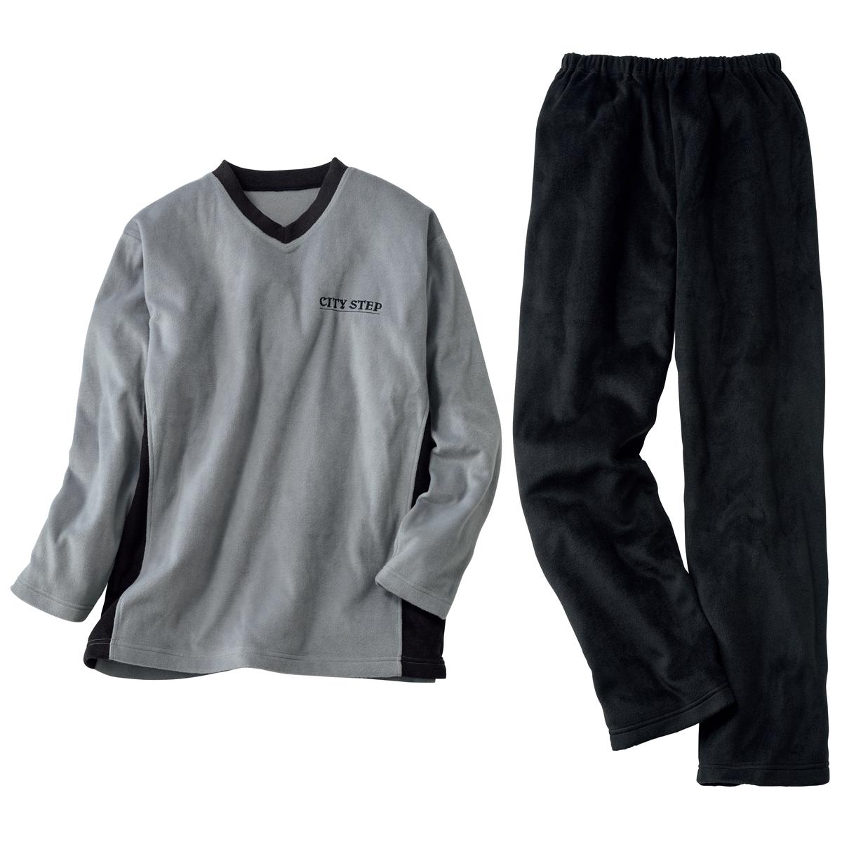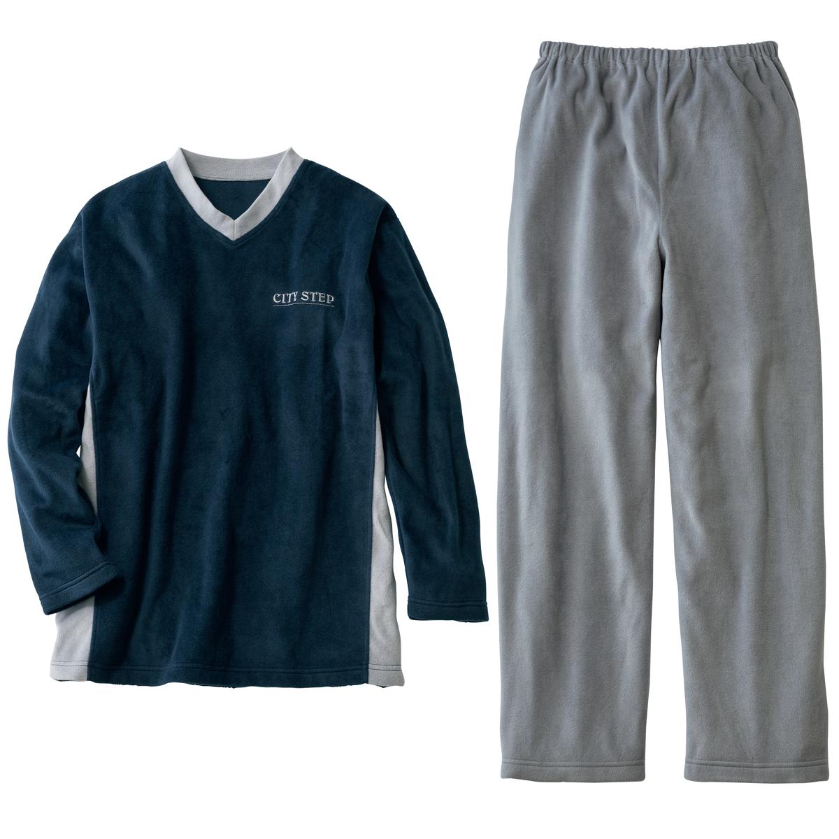 -お買い得ポイント-ふわふわのフリース素材を、シンプルな2トーンのセットアップに仕立てた部屋着。とろみのある柔らかな素材感は、一度着ると手放せなくなります。-デザイン-胸元のワンポイントロゴもポイント。首元がやや開いたVネックは着脱しやすく、圧迫感が少ないのでリラックスして眠れそう。-素材特徴-あったかいのに、スウェットよりも軽いのがフリースの良さ。分厚い綿素材に比べて乾きが速いのも寒い季節にはうれしいポイント。