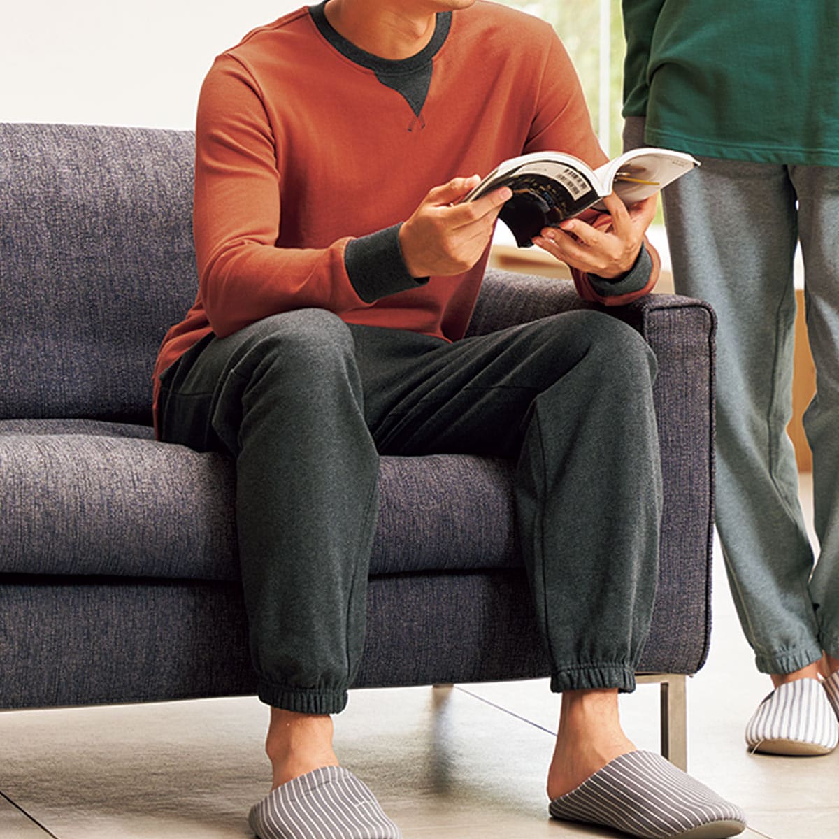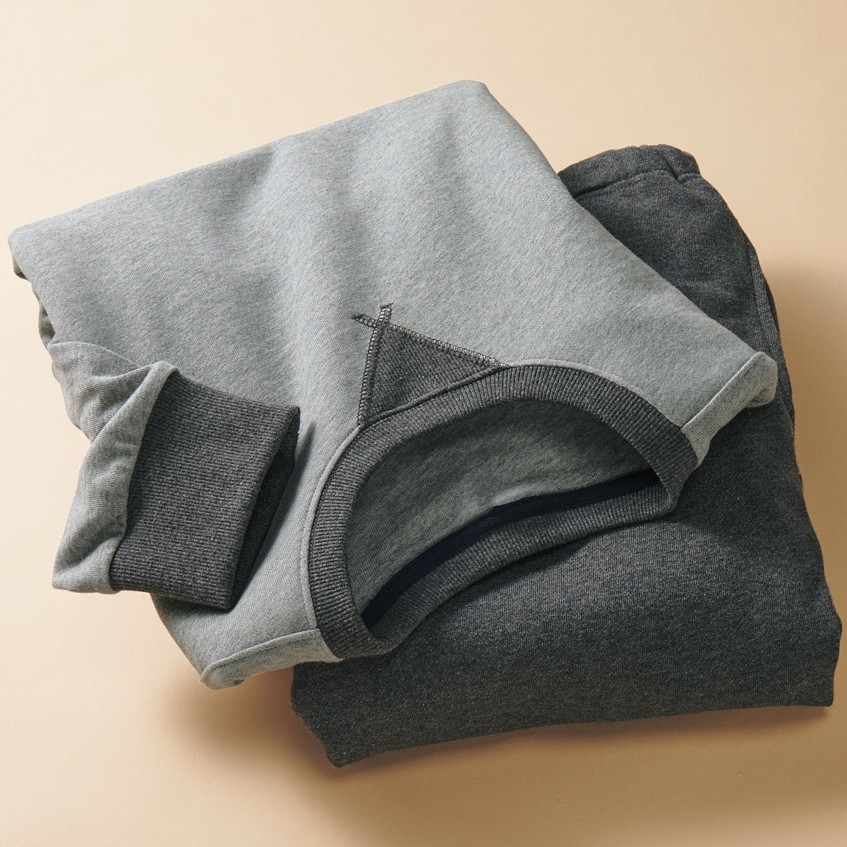 寒い季節もパジャマは綿100%にこだわりたい!というメンズにぴったりの綿100%裏毛素材のあったスウェットルームウェア。
