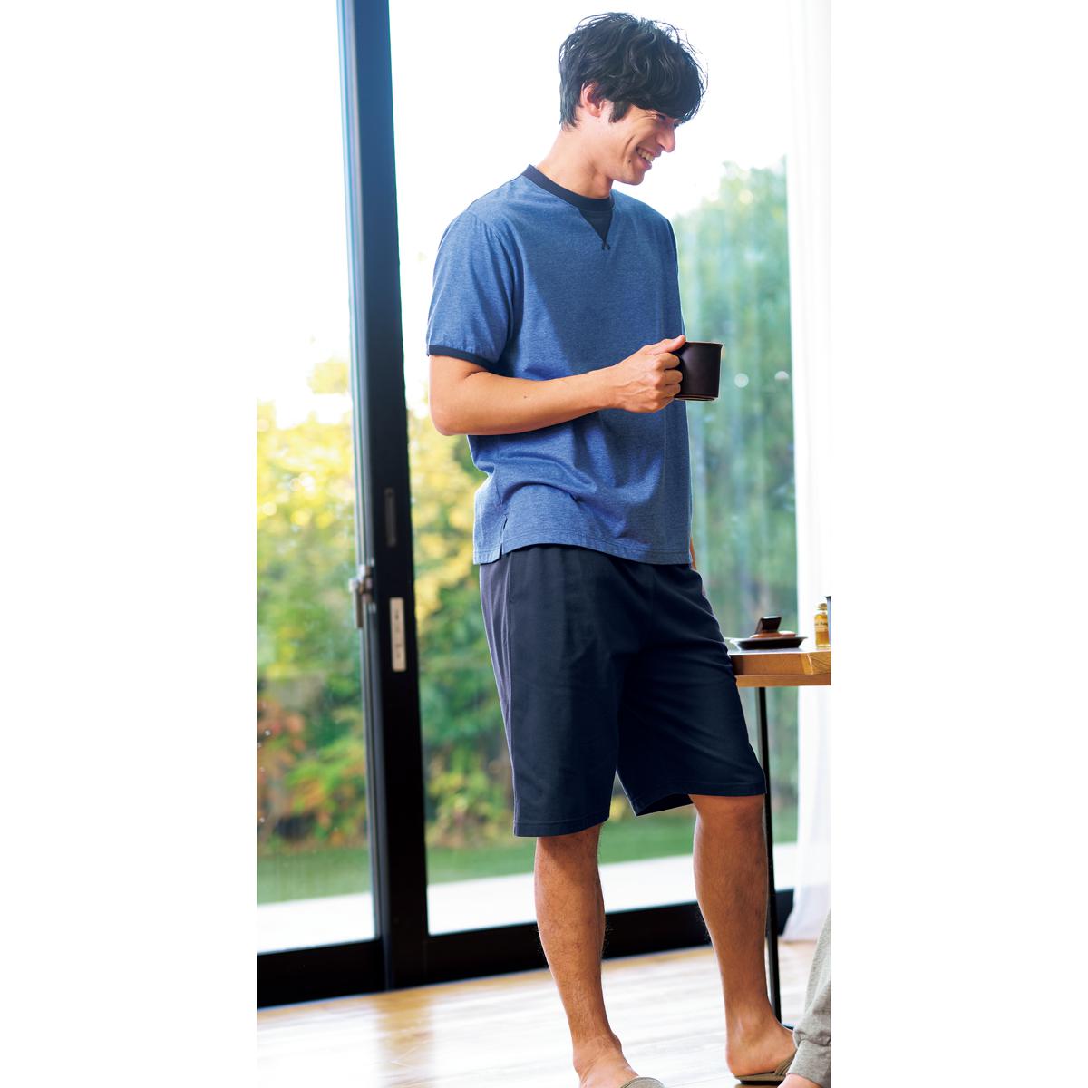 【綿100%(本体)】【男女兼用】今買って、真夏まで快適に過ごせる部屋着。吸汗・速乾加工で汗をかいてもサラリ。Tタイプで動きやすい半袖ルームウェア