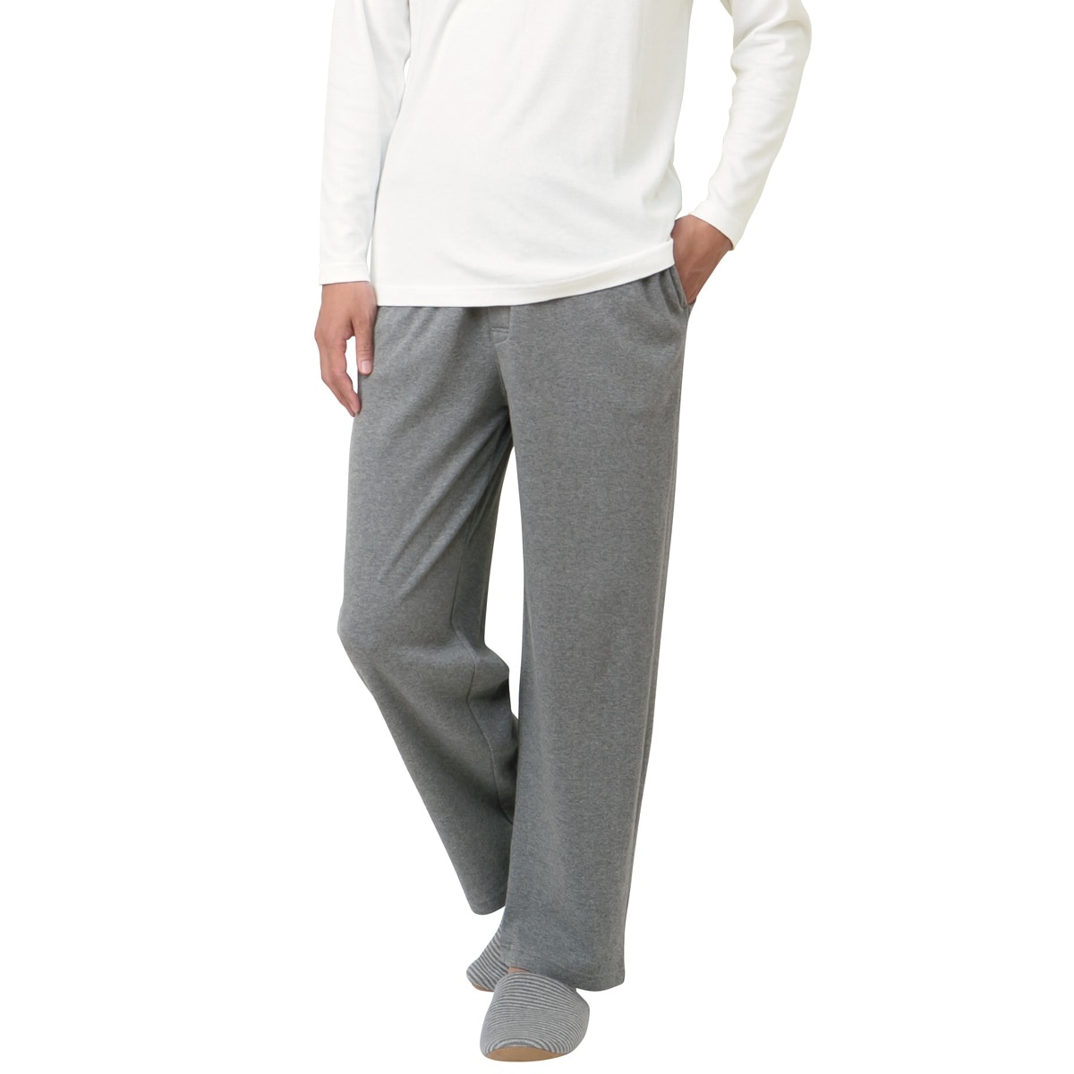 -お買い得ポイント-はきこなしやすいスタンダードな綿100%メンズパンツです。-デザイン-両サイドにメッシュ仕様のポケット付きで、洗濯後に乾きやすいのがポイント。股上深めのデザインで、かがんでも背中が出にくいのも魅力です。男性に嬉しい前開き仕様。チャコールグレー、ブラックの2色からお選びいただけます。-素材特徴-なめらかな肌ざわりが特長の綿100%スムース素材。
