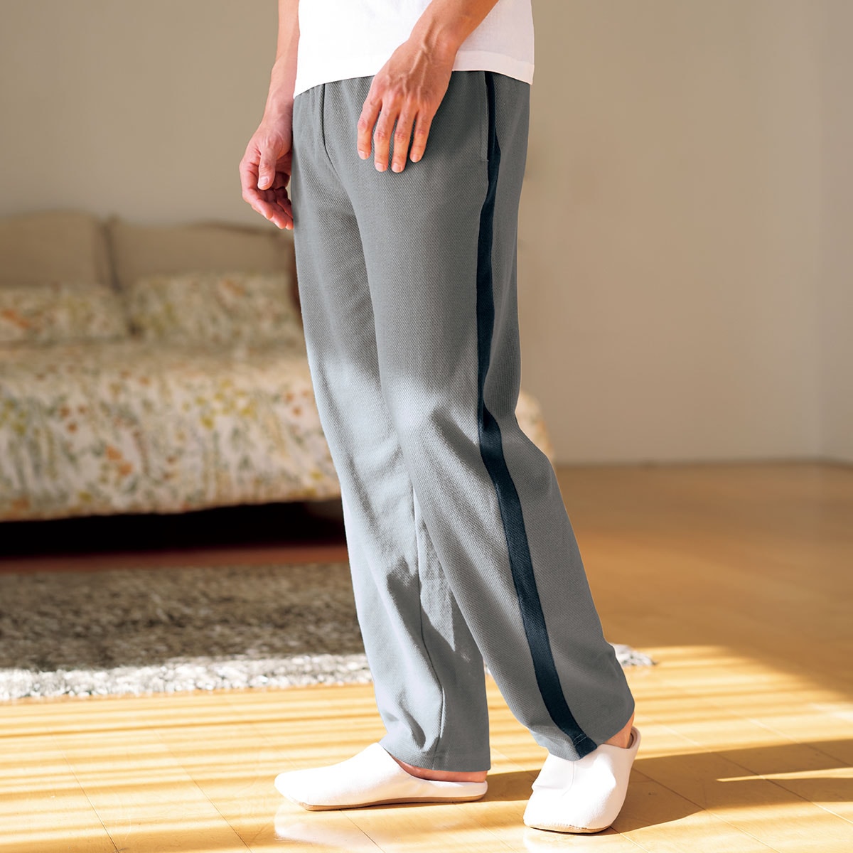 -お買い得ポイント-速乾性に優れたハニカムメッシュのルームパンツ。-デザイン-ベーシックなデザインに、シャープに見せるサイドラインがアクセントです。-素材特徴-【SmartDry®】スマートドライは吸汗・速乾性・通気性に優れた機能素材。肌ざわりもサラッと爽やかで、毎年夏に人気の素材です。洗濯後も素早く乾きます。