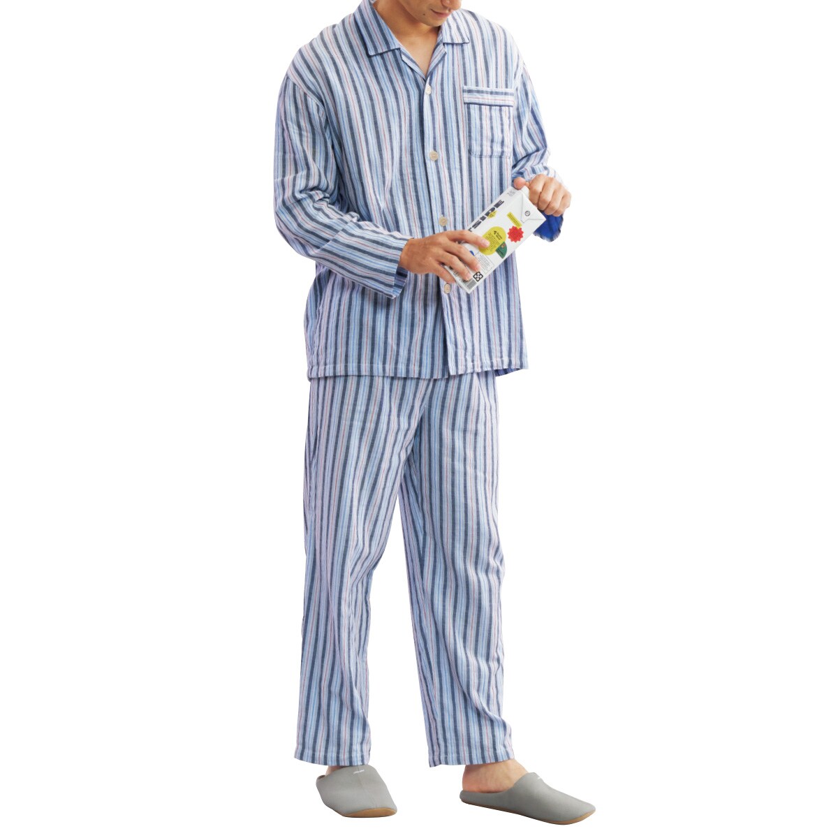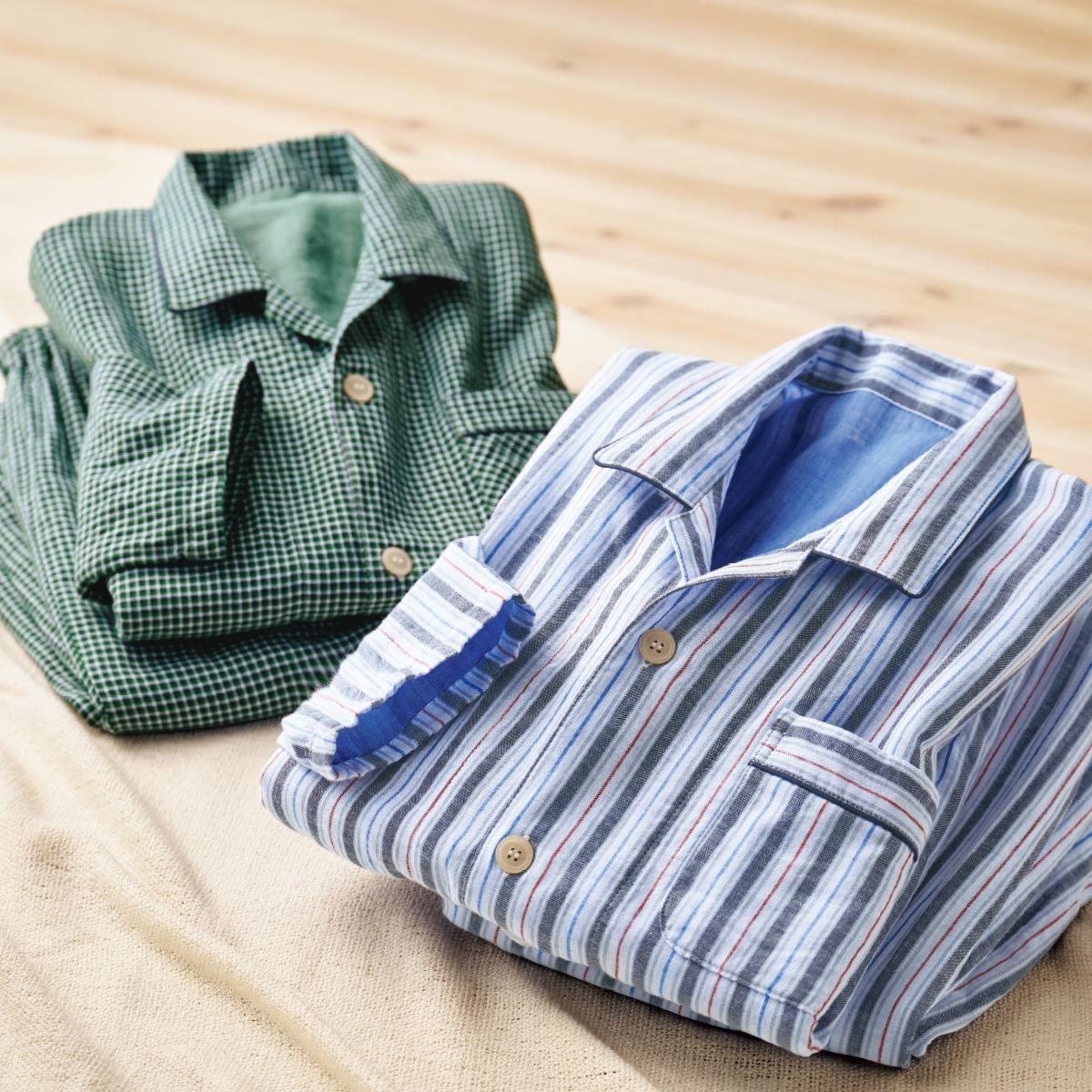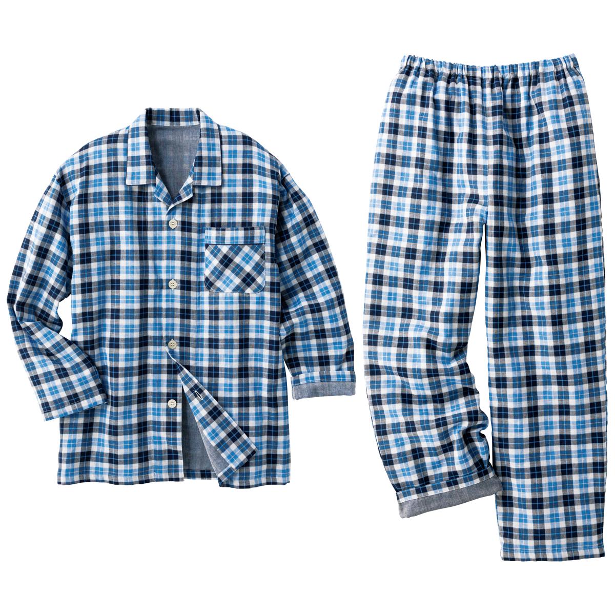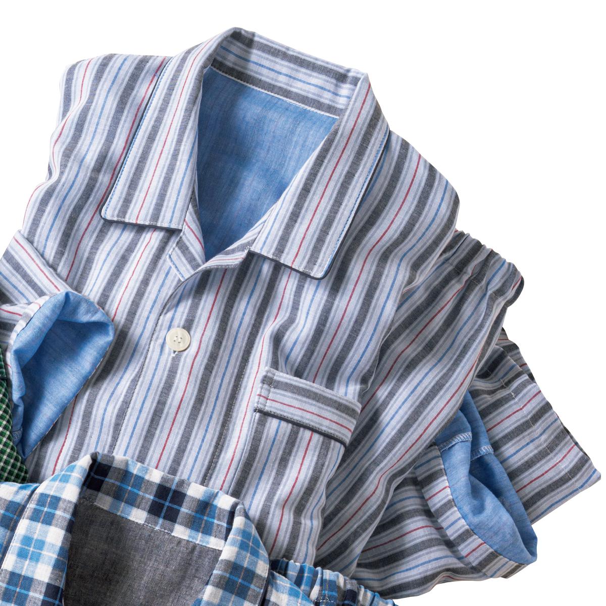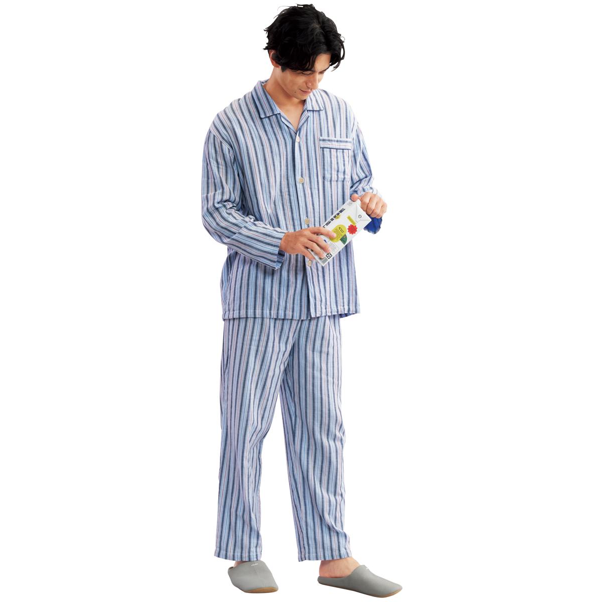 綿100%ダブルガーゼシャツパジャマ(男女兼用)