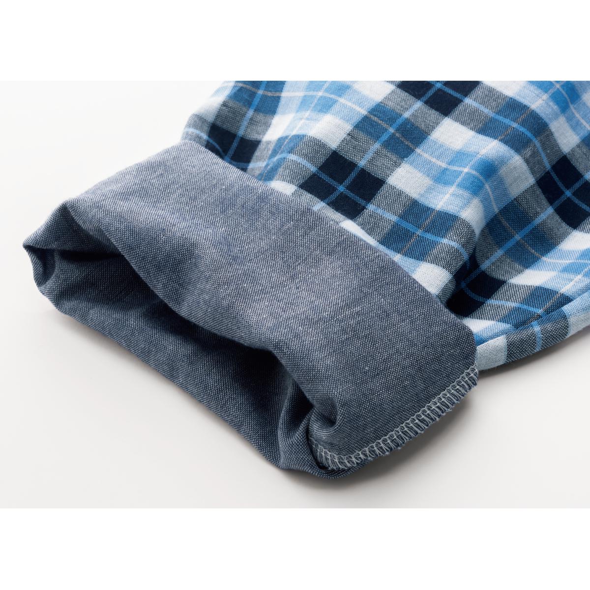 やさしい肌あたり あえて袖口のカフスをなくし、ガーゼのやわらかさを追求。配色の違いも楽しめます。