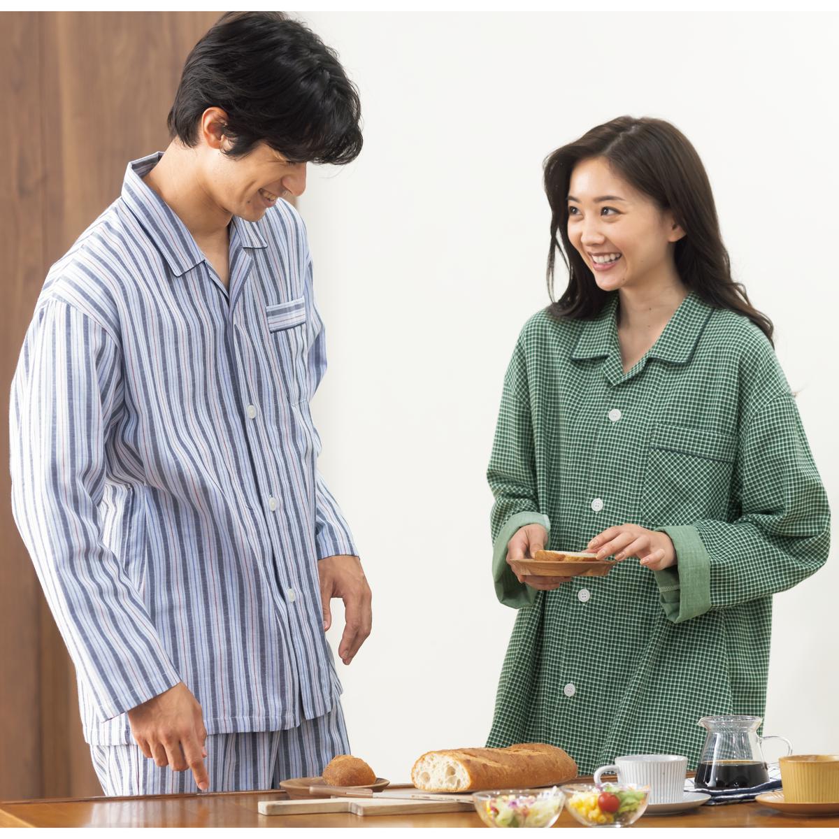 綿100%ダブルガーゼシャツパジャマ(男女兼用)