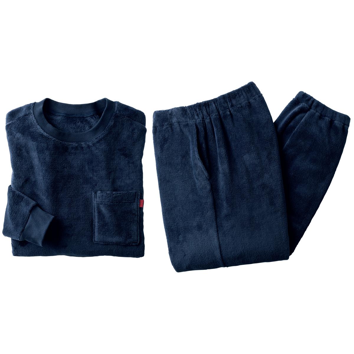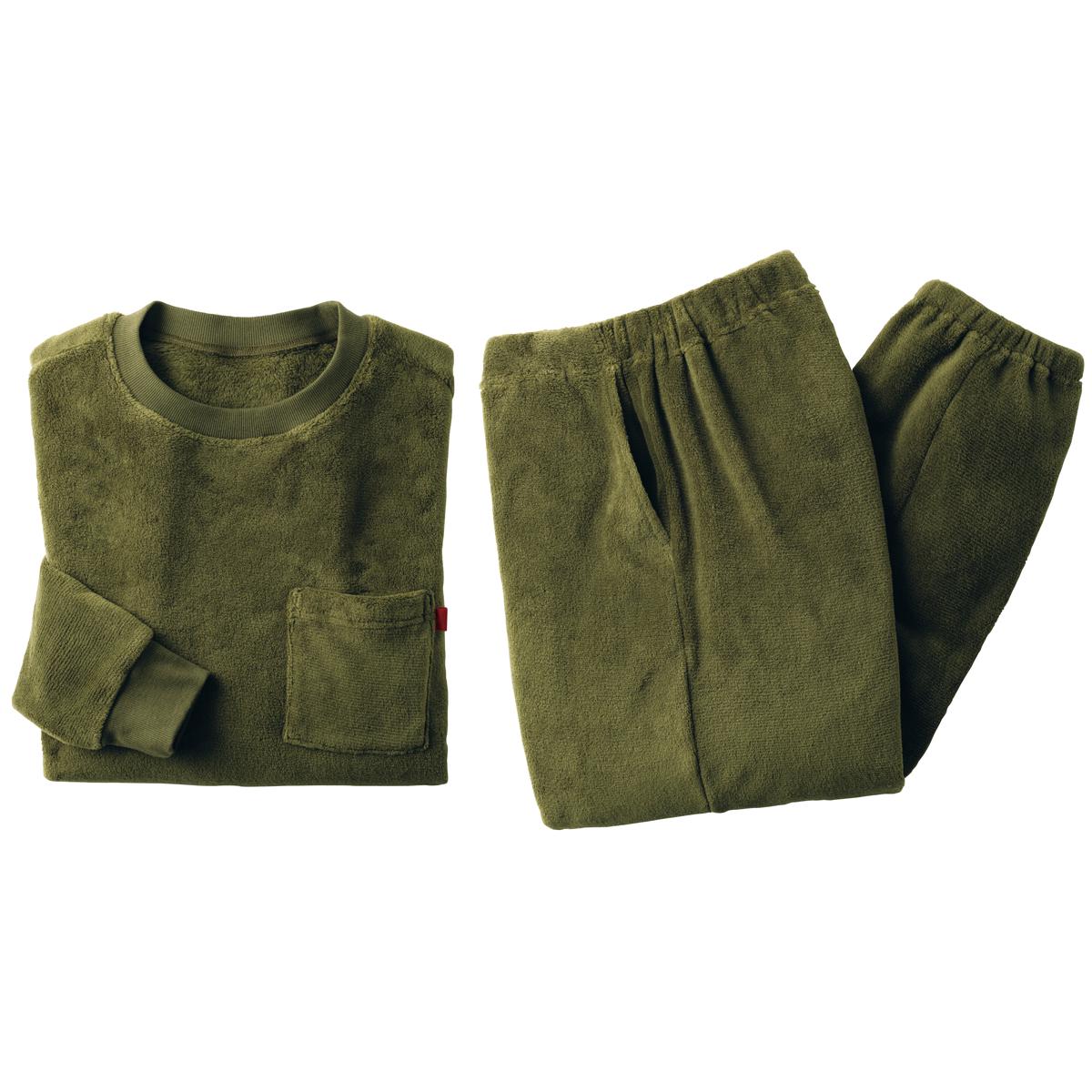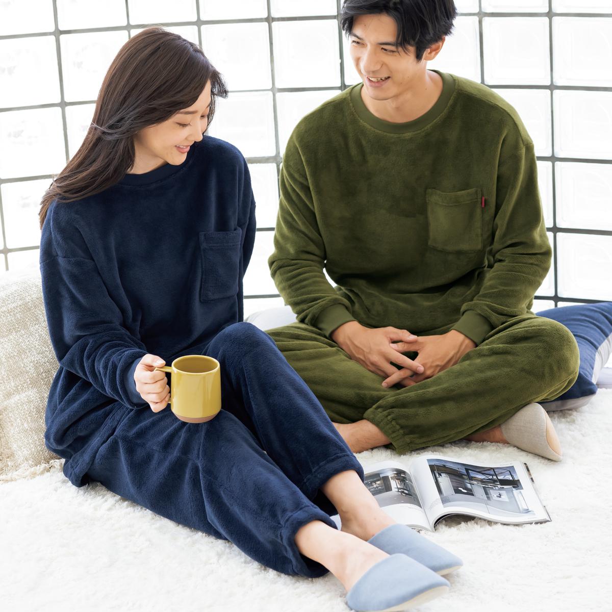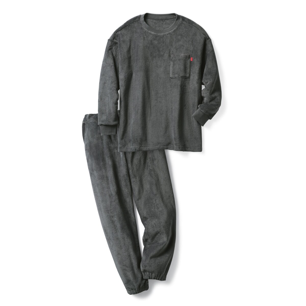 -お買い得ポイント-ボリューミーな暖かパジャマ。部屋着にも活躍します。-デザイン-左胸ポケットにはピスネームのアクセント。シックな色合いは、着る人を選びません。-素材特徴-肌側には毛足が長めのもこもこフリースを使用。