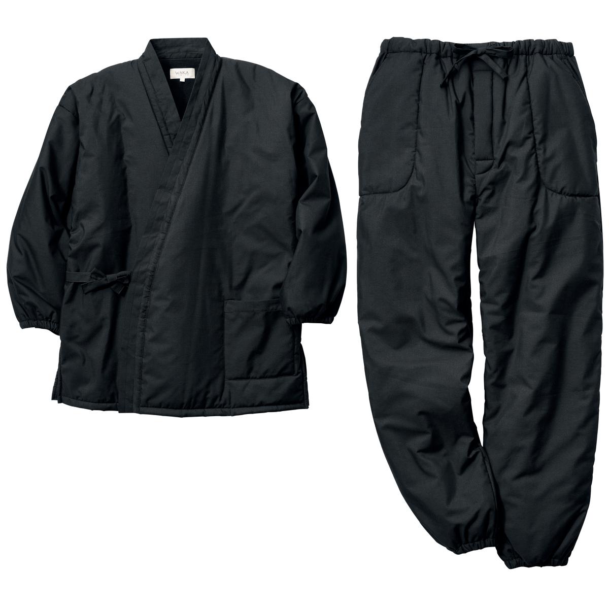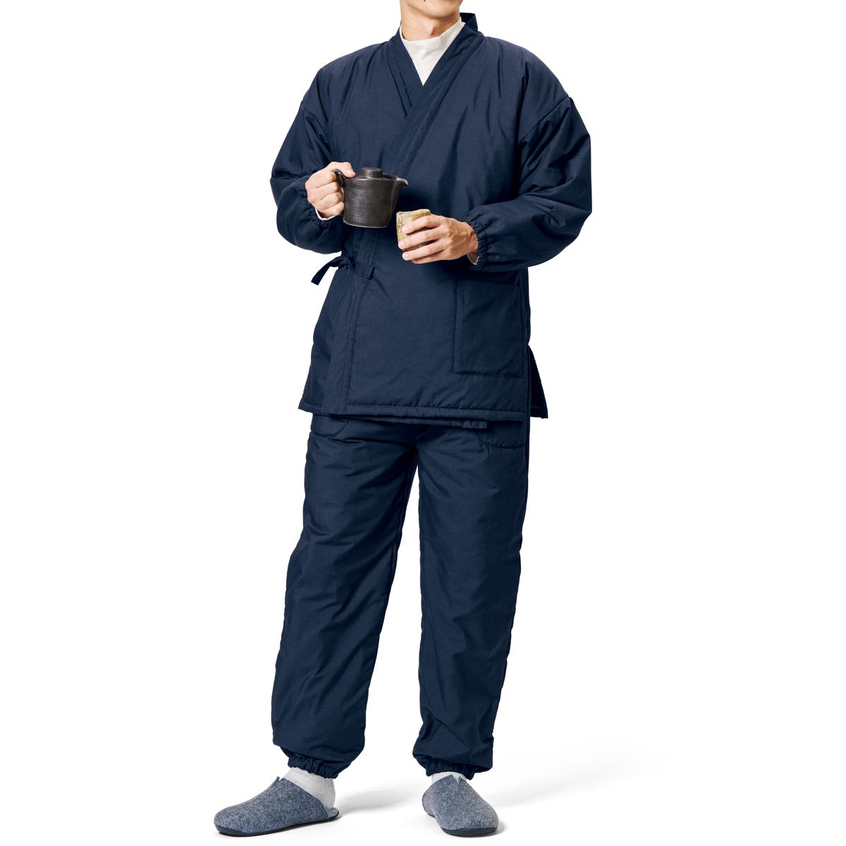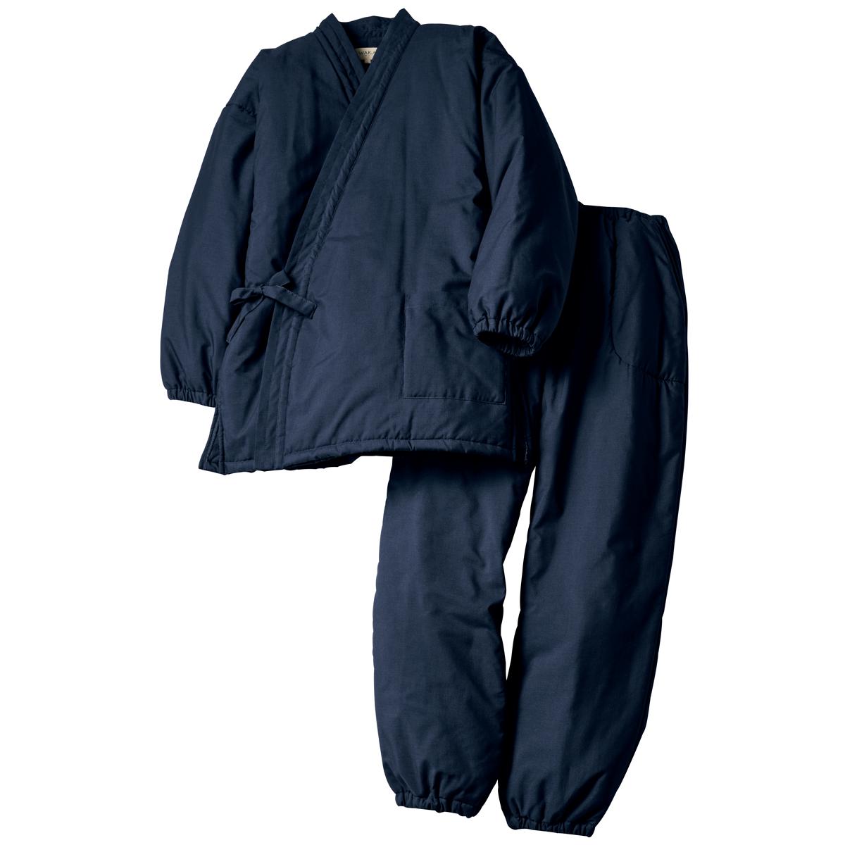 ■[表地]ポリエステル65%綿35%(シーチング)[裏地]ポリエステル100%(上着身頃/フリース・袖/タフタ、パンツ上部/フリース・下部/タフタ)[中わた]ポリエステル100%●上着=左前ポケット●パンツ=前あき・ボタン付●ウエストはゴム&スピンドル仕様●パンツ=左右ポケット・右後ろポケット●手洗いOK●ウエストゴム取り替えOK●中国製【生地厚指数5】