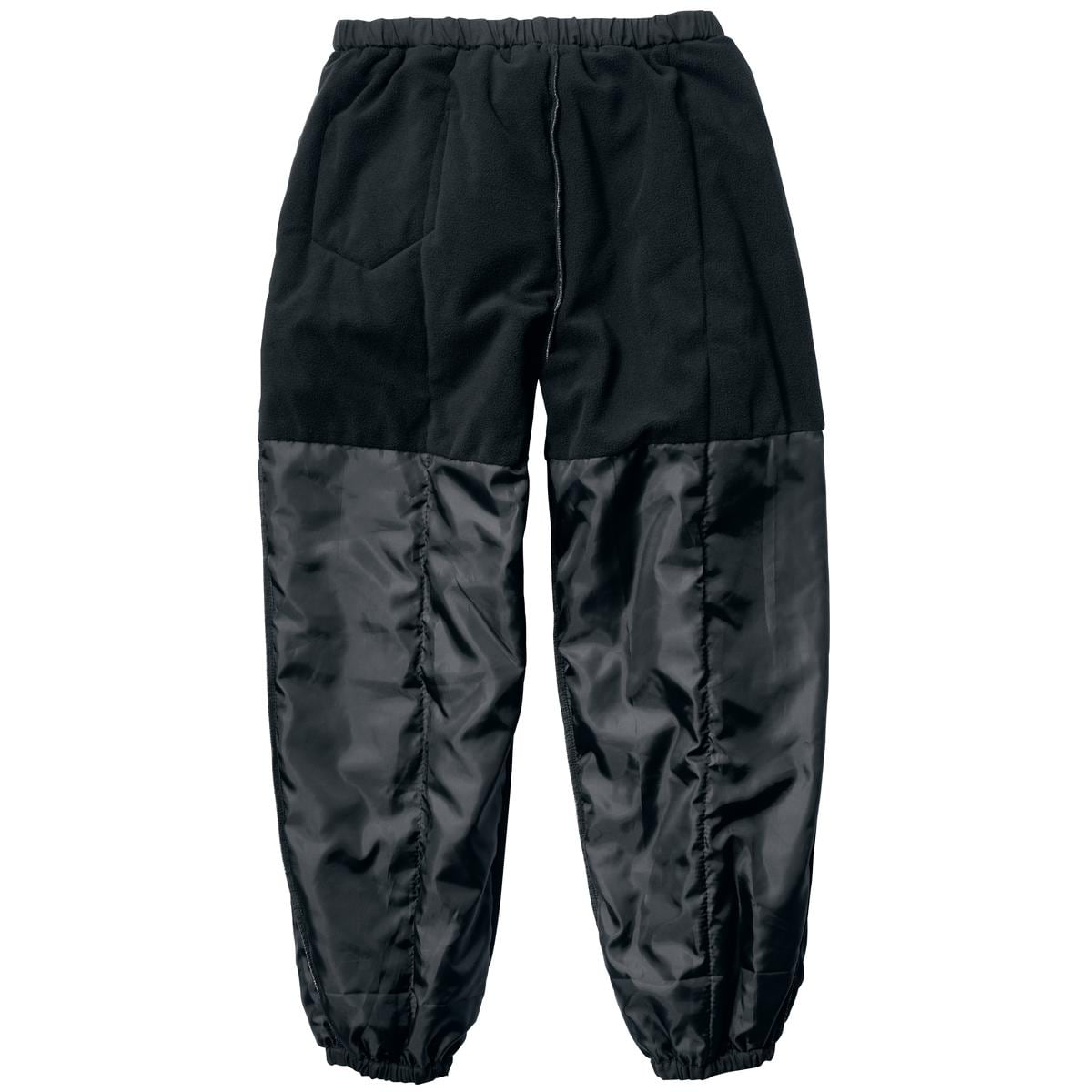肌側フリース付き 前身頃と背中、腰まわりの肌側はフリース素材で、冷えやすい部分も暖か。袖部分と太ももから下はすべりのよい裏地付き。