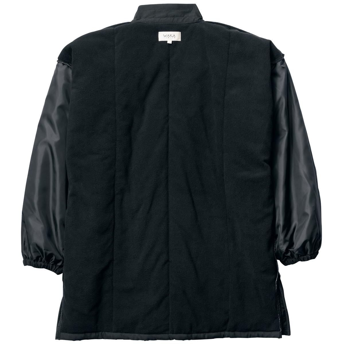 -お買い得ポイント-保温性の高い中わたキルト素材に加え、冷えやすい部分にフリースがついてボリューム感と暖かさをアップ!-デザイン-前開き仕様。袖口と裾口は冷気の侵入を防ぐゴム入り仕様。両サイドと右後ろにポケットがついていて、便利です。-素材特徴-生地の間に中わたを挟み込んだキルト素材は、内側に空気を含み保温性が高まります。