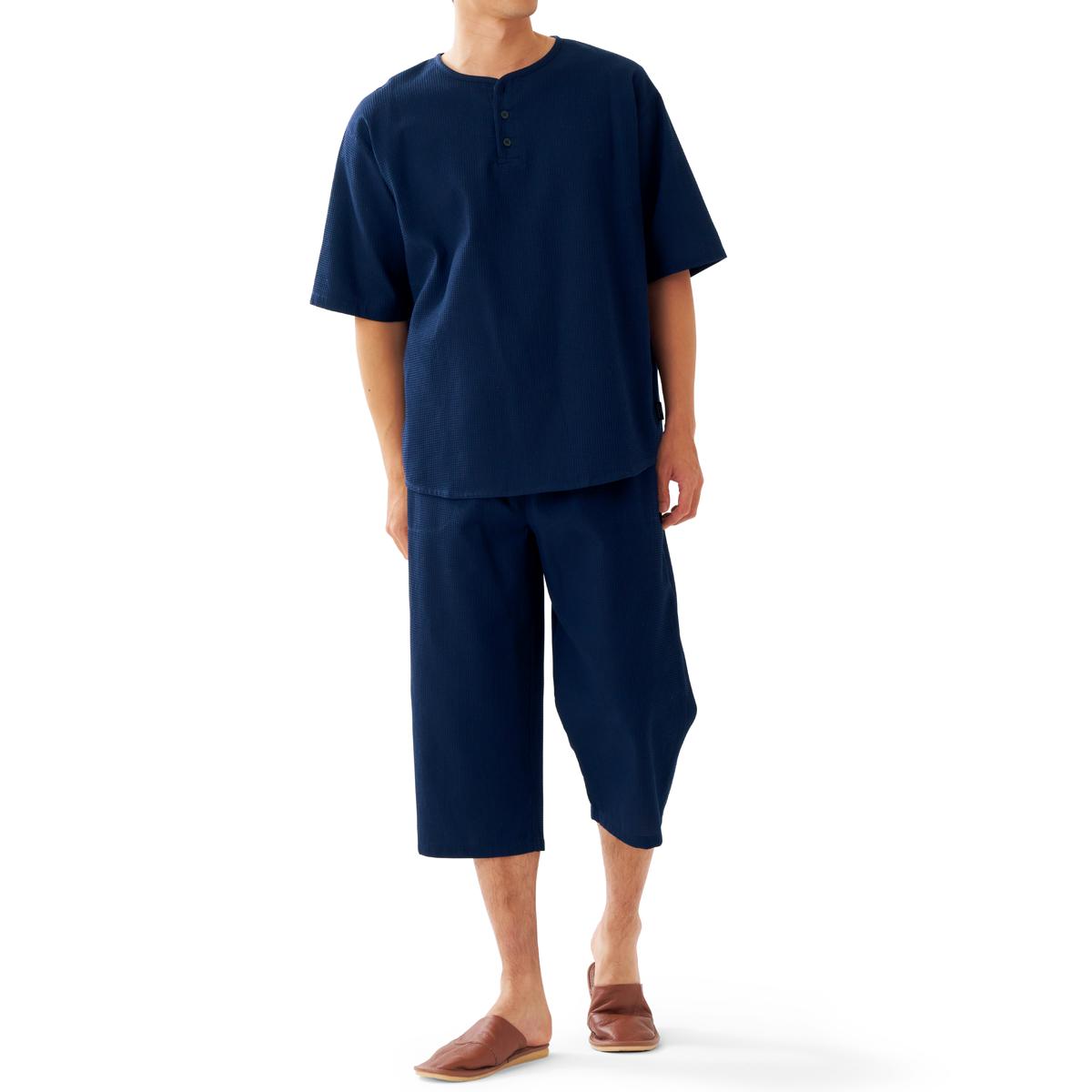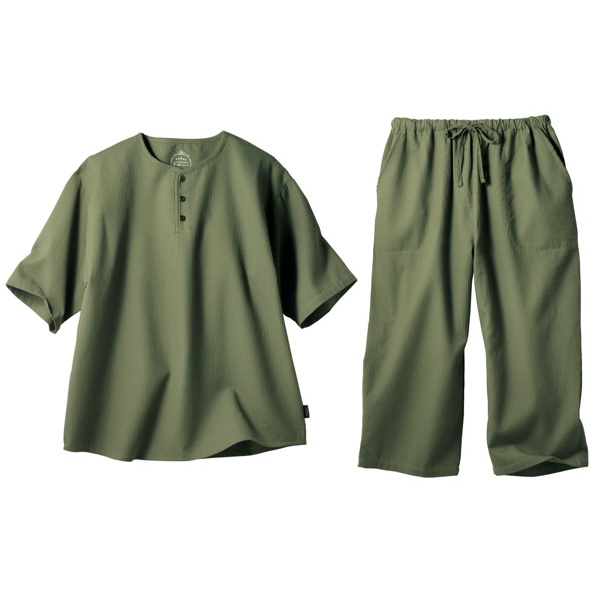 ■綿100%(ワッフル)●パンツ=前とじ・左右ポケット●ウエストゴム取り替えOK●中国製【綿100%】【生地厚指数1】