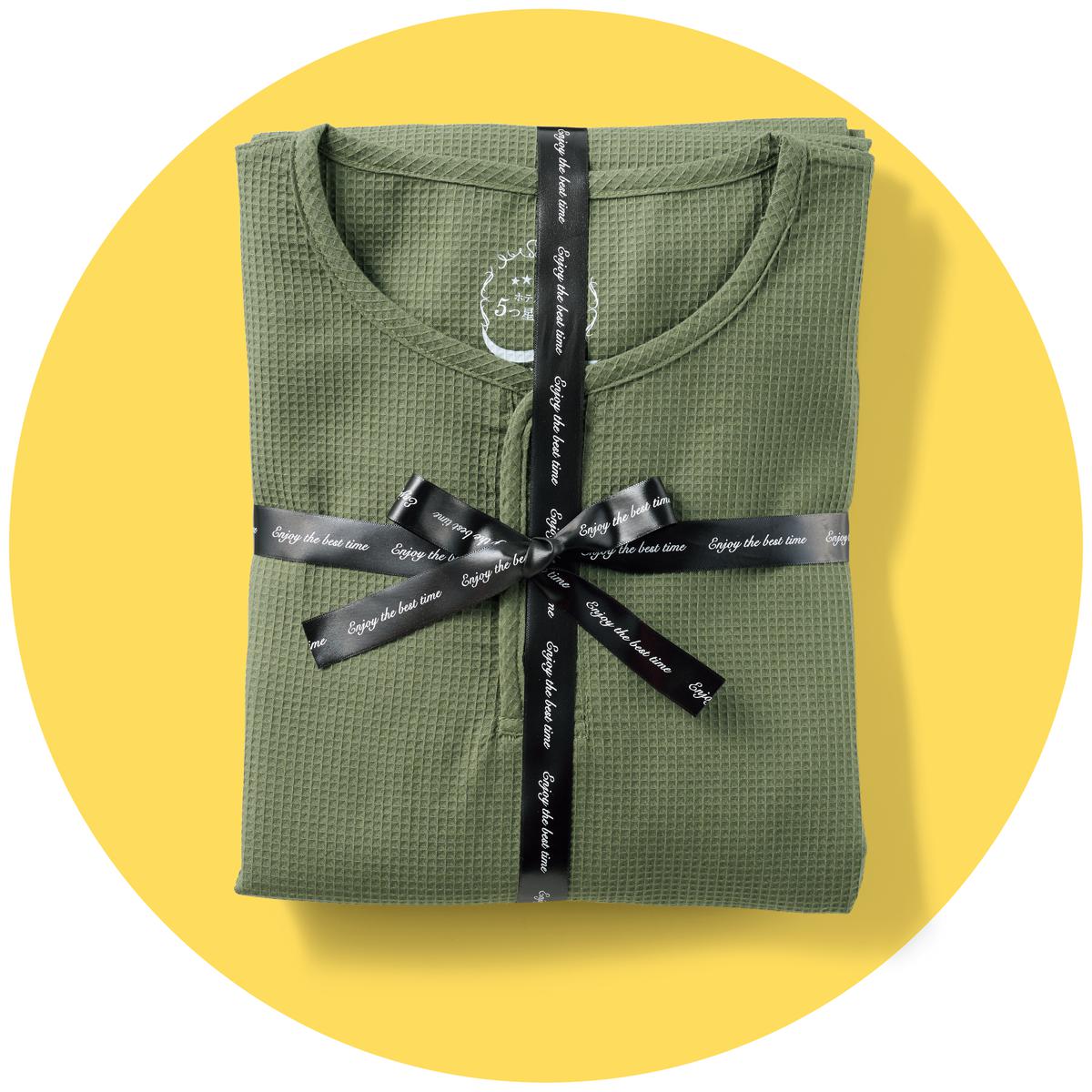 -お買い得ポイント-リボン付きでギフトとしても喜ばれます。-デザイン-上着は5 分袖、パンツは7分丈。パンツには、左右ポケットが付いています。-素材特徴-綿100%ワッフル素材。凹凸感がさらっと心地よくやさしい肌ざわりです。