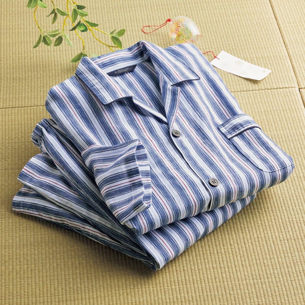 -お買い得ポイント-寝汗をかいてもべたつかず、心地よいサラサラ感をキープします。-デザイン-なんとも涼しげなブルーとネイビーの2色をご用意しました。ネイビーは、配色もおしゃれです。-素材特徴-滝が流れているような凹凸のあるシボが特徴的なナイアガラ織。梨地のようなシャリ感で肌にはりつきにくく、薄手でさらりと軽やかです。