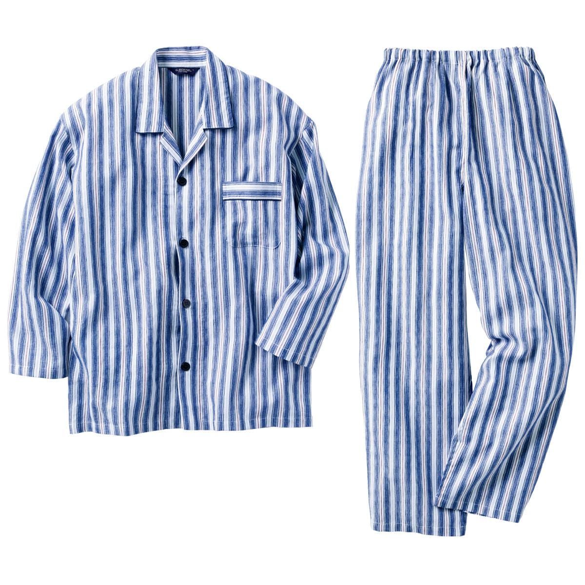 ■綿100%(先染めナイアガラ)●上着=左胸ポケット●パンツ=前とじ・ポケットなし▼商品によって柄の位置が異なります●ウエストゴム取り替えOK●中国製【綿100%】 【男女兼用】 【大きいサイズ・小さいサイズも展開】(S~5L)【生地厚指数1】
