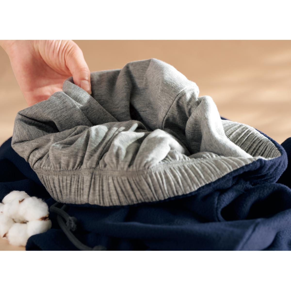 「寝る時も綿がいい」人のために、肌側を綿100%で作りました。フリース+綿の「ぬくもり」