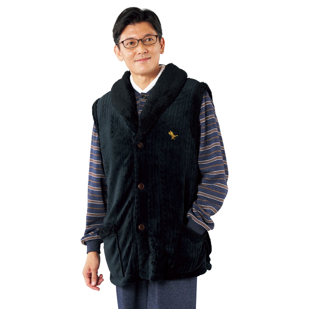 -お買い得ポイント-とにかく温かい裏ボアベストです。パジャマの上から羽織って、お家時間を寒さ知らずに。-デザイン-左胸の刺しゅうがアクセントに。大きめのポケットは、冷え切った手も温められます。-素材特徴-裏ボアでとにかく温かく、柔らかで肌触り抜群。保温性に優れているので寒い季節に大活躍してくれます。