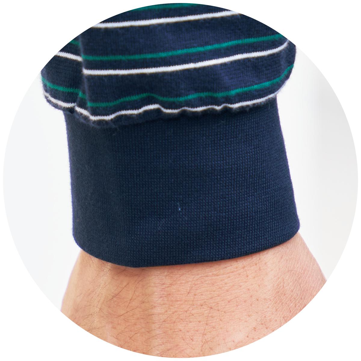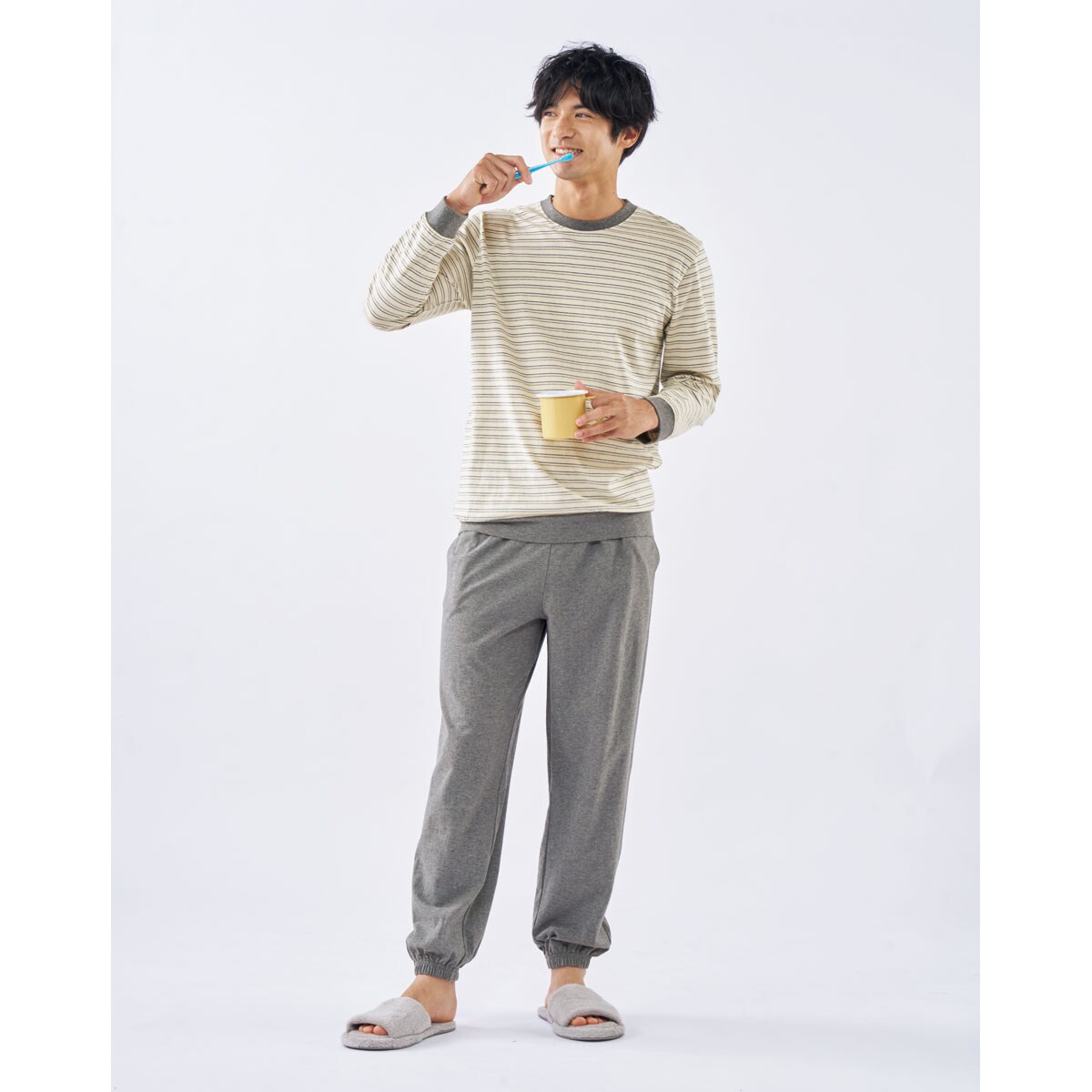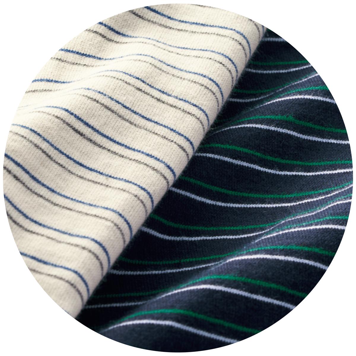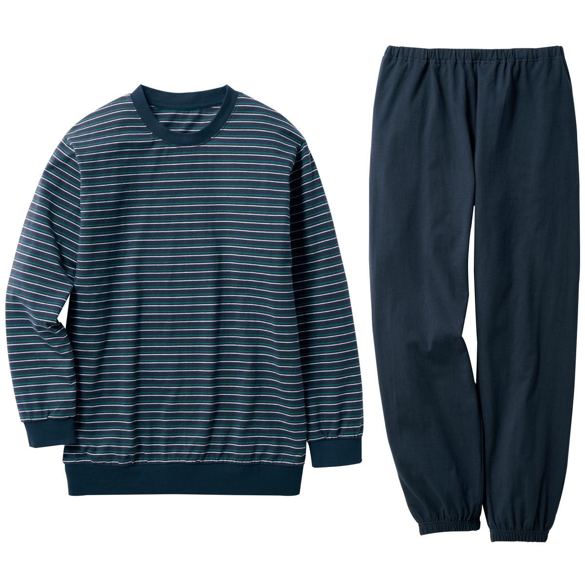 -お買い得ポイント-ボーダーの配色がアクセントに。男性だけでなく、女性にもおすすめです。-デザイン-袖口と裾は冷気の侵入を防ぐ仕様。パンツは、左右ポケット付き。-素材特徴-生地に付着する菌の増殖を抑え、ニオイを防ぐ綿100%素材。ロングシーズン爽やかに着られます。