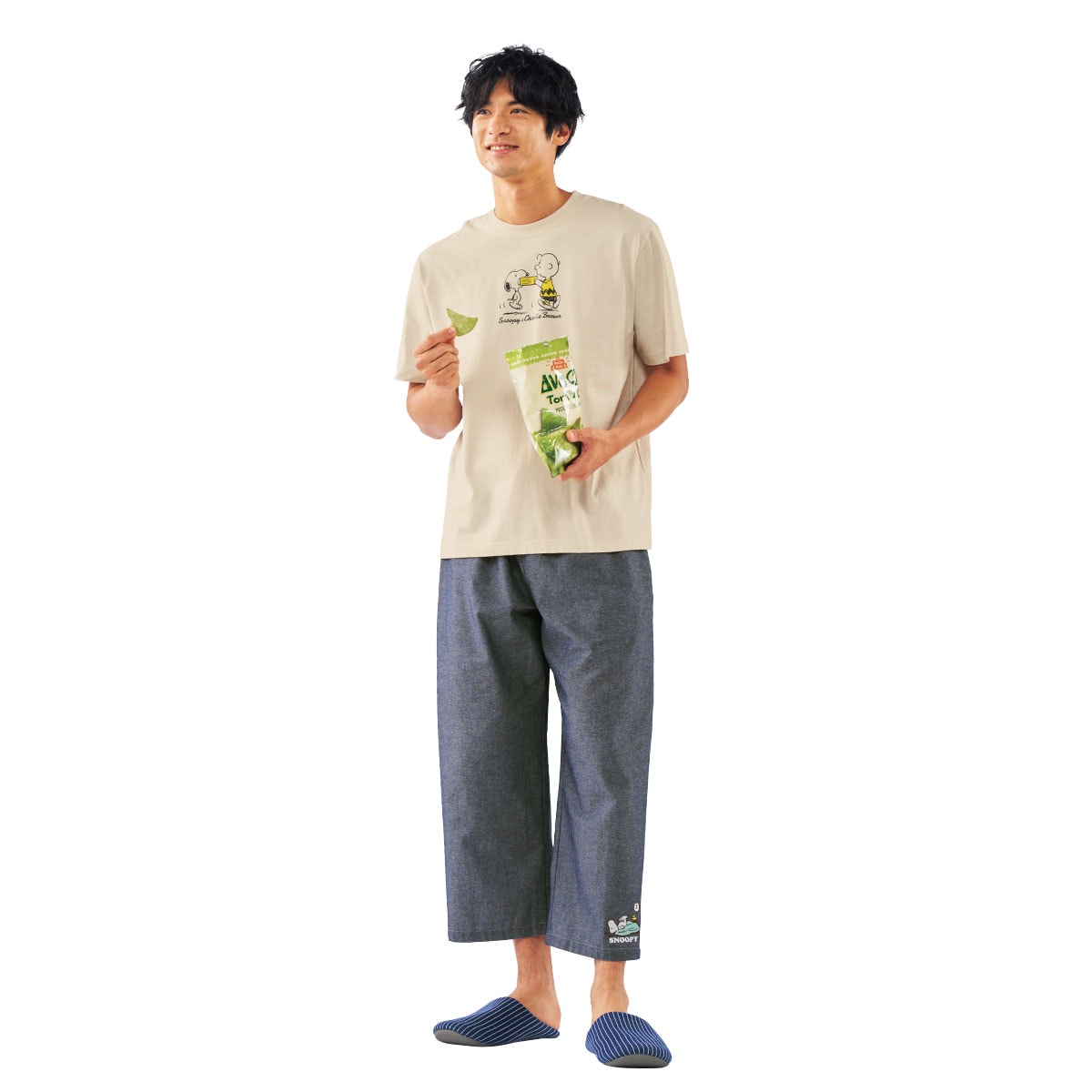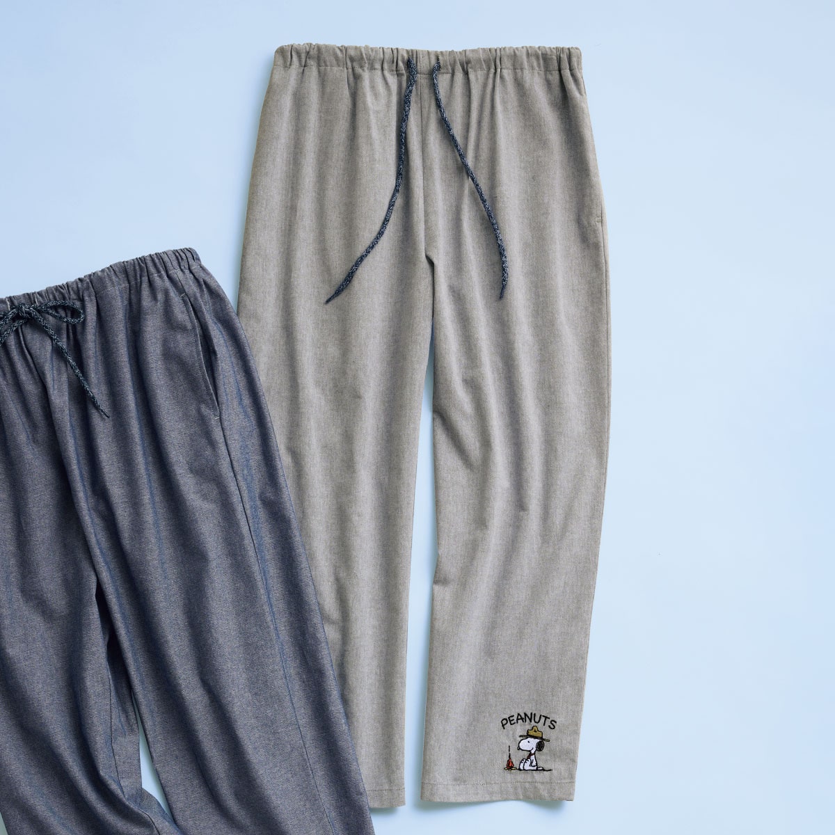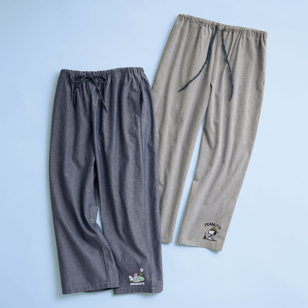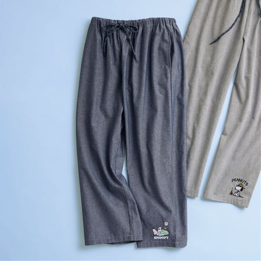 -お買い得ポイント-さらっと薄手で楽なはき心地の8分丈。ゆったりはけるリラックスパンツです。-デザイン-パンツの裾にはリラックスムードのスヌーピー。さりげない刺しゅうが目を引きます。-素材特徴-通気性が高く、薄手でやわらかな肌触りです。
