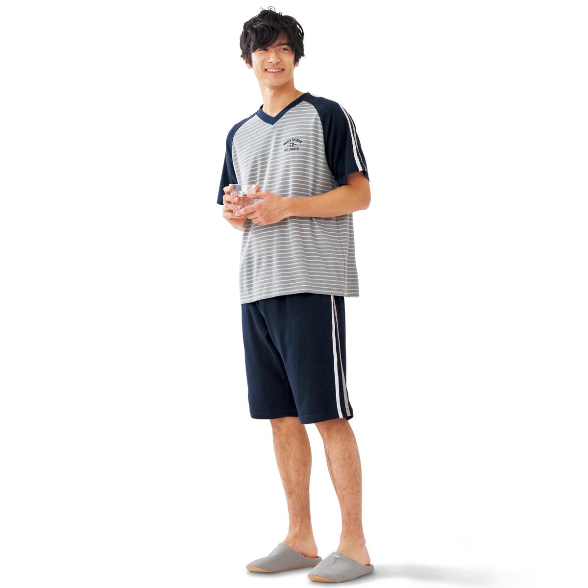 -お買い得ポイント-ますますパワーアップしたスマートドライのパジャマです。-デザイン-パンツのサイドには2本ラインが入ったスポーティなデザイン。動きやすいラグランスリーブとハーフ丈のボトムの楽ちんな着心地で部屋着にもおすすめ。-素材特徴-吸汗・速乾性・通気性に優れたメッシュ編みメンズルームウェア。肌ざわりもさらりと爽やかで毎年夏に1番人気の素材です。