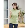 少しハイネックにして気になる首筋をさり気なくカバーできるタンクトップ。透けるチュニックやカーディガン、ジャケットとの重ね着にも◎
