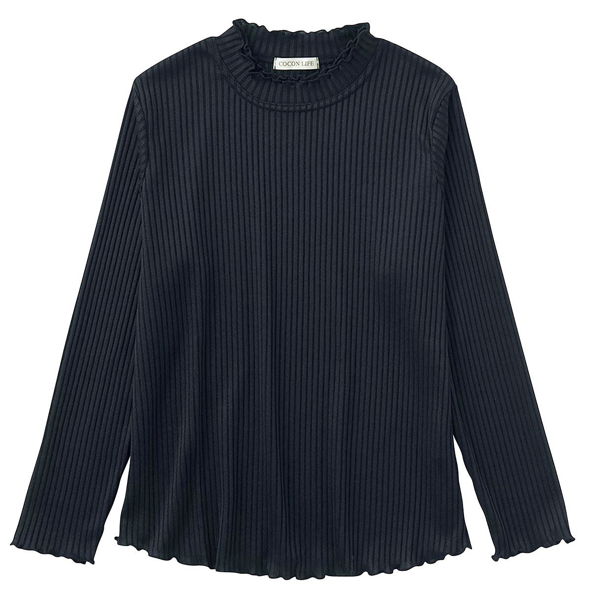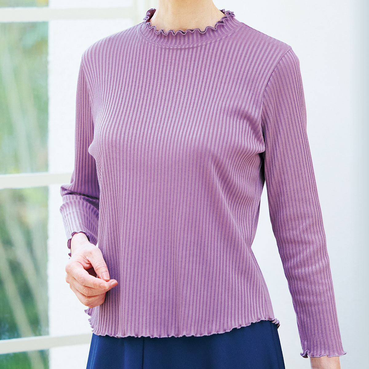 シルキーな光沢で魅せる上品なプルオーバーで、美しい7色展開。ーデザインー縁をメロー仕上げにし、ハイネックを二重仕立てにすることで華やぎアップ。ー素材特徴ーしなやかで伸縮性がある東レのシルック®素材は上品な光沢感が持ち味。