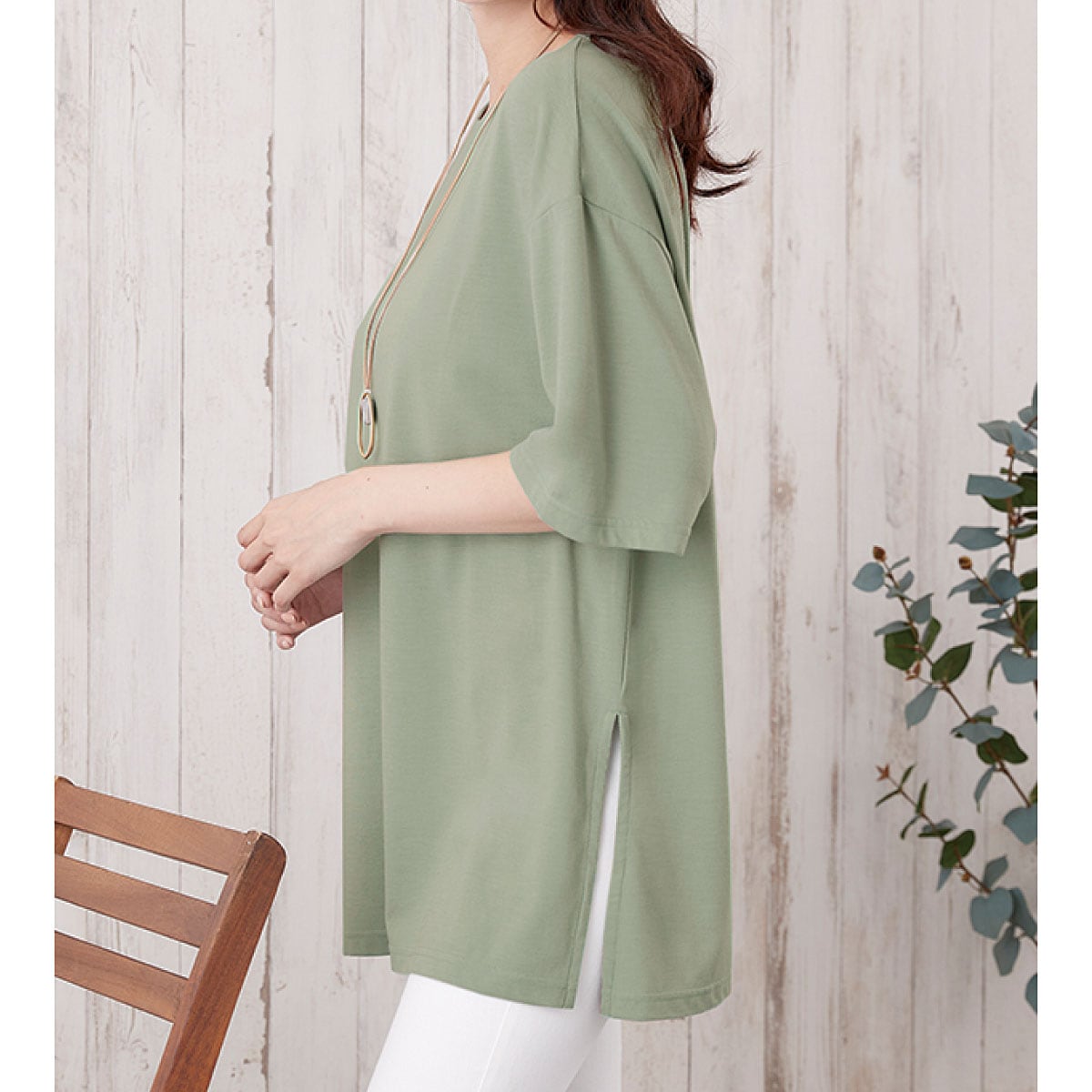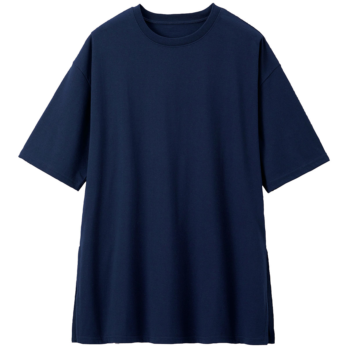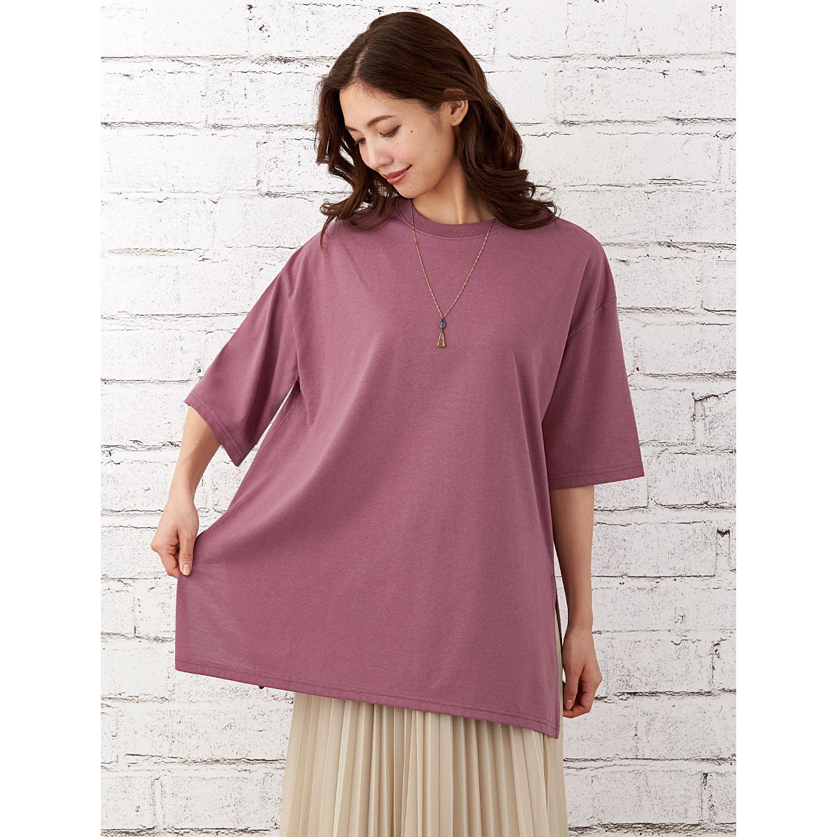 ゆったり着れるオーバーシルエット。裏テープ始末のきれいなロングスリットTシャツ。【UVカット率 約90%】