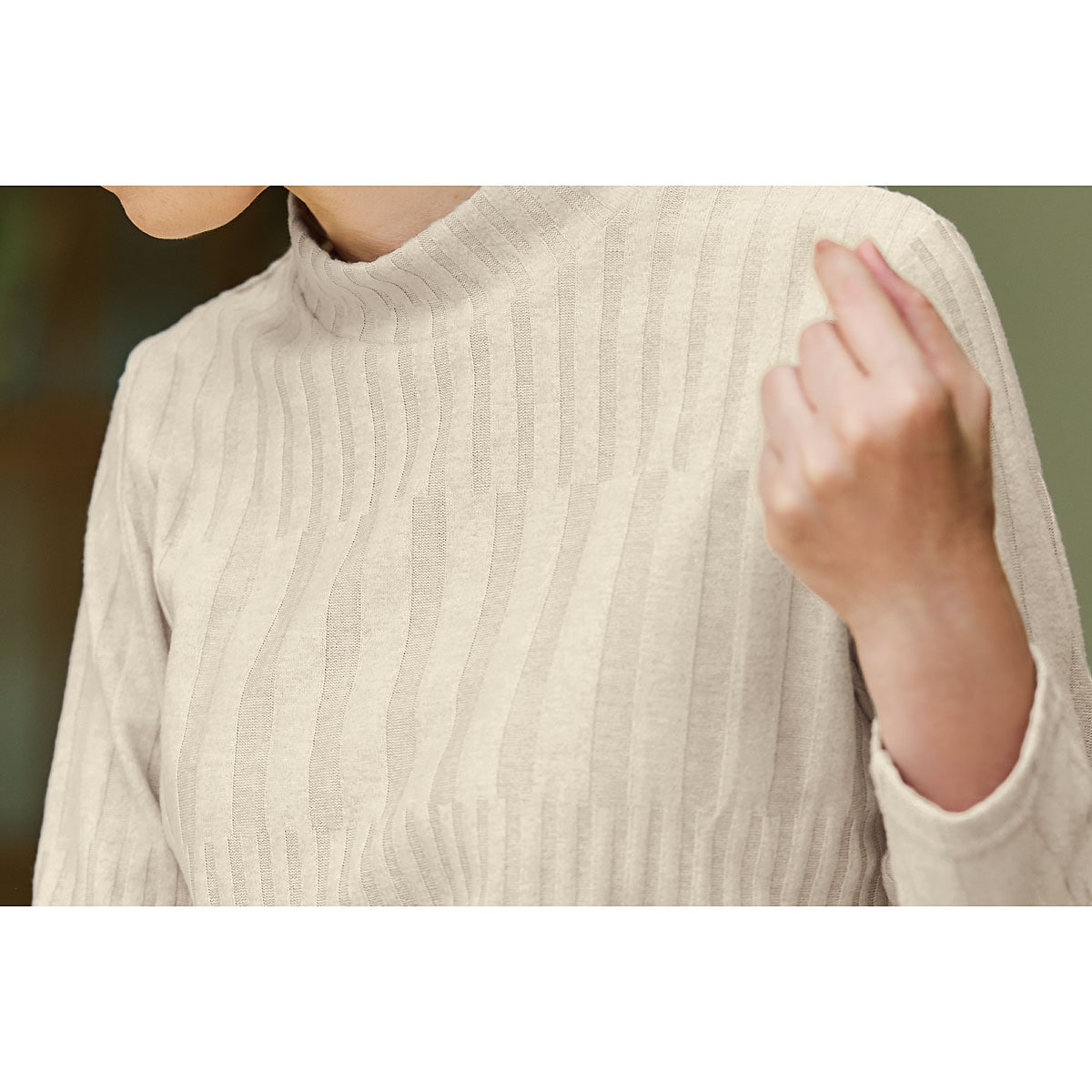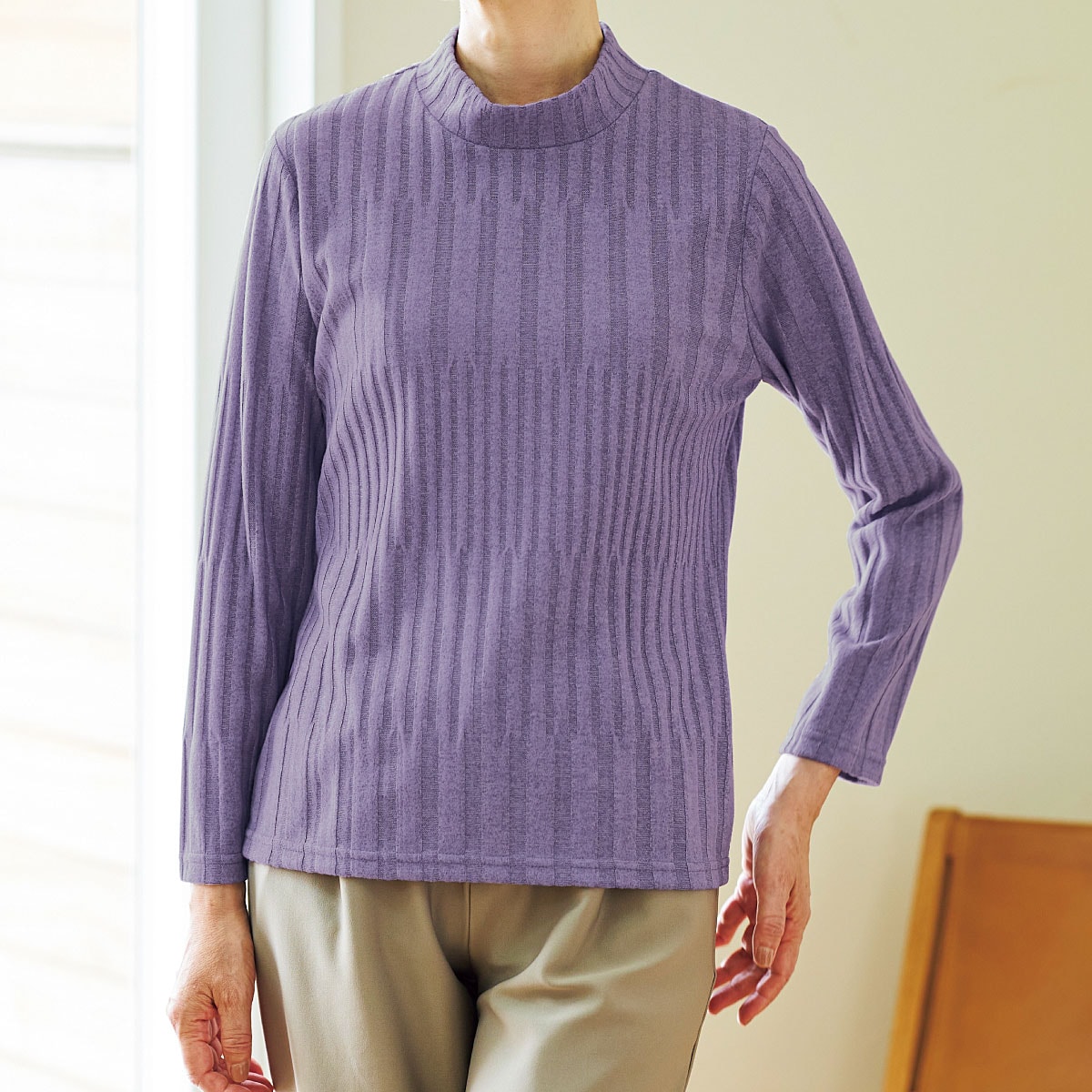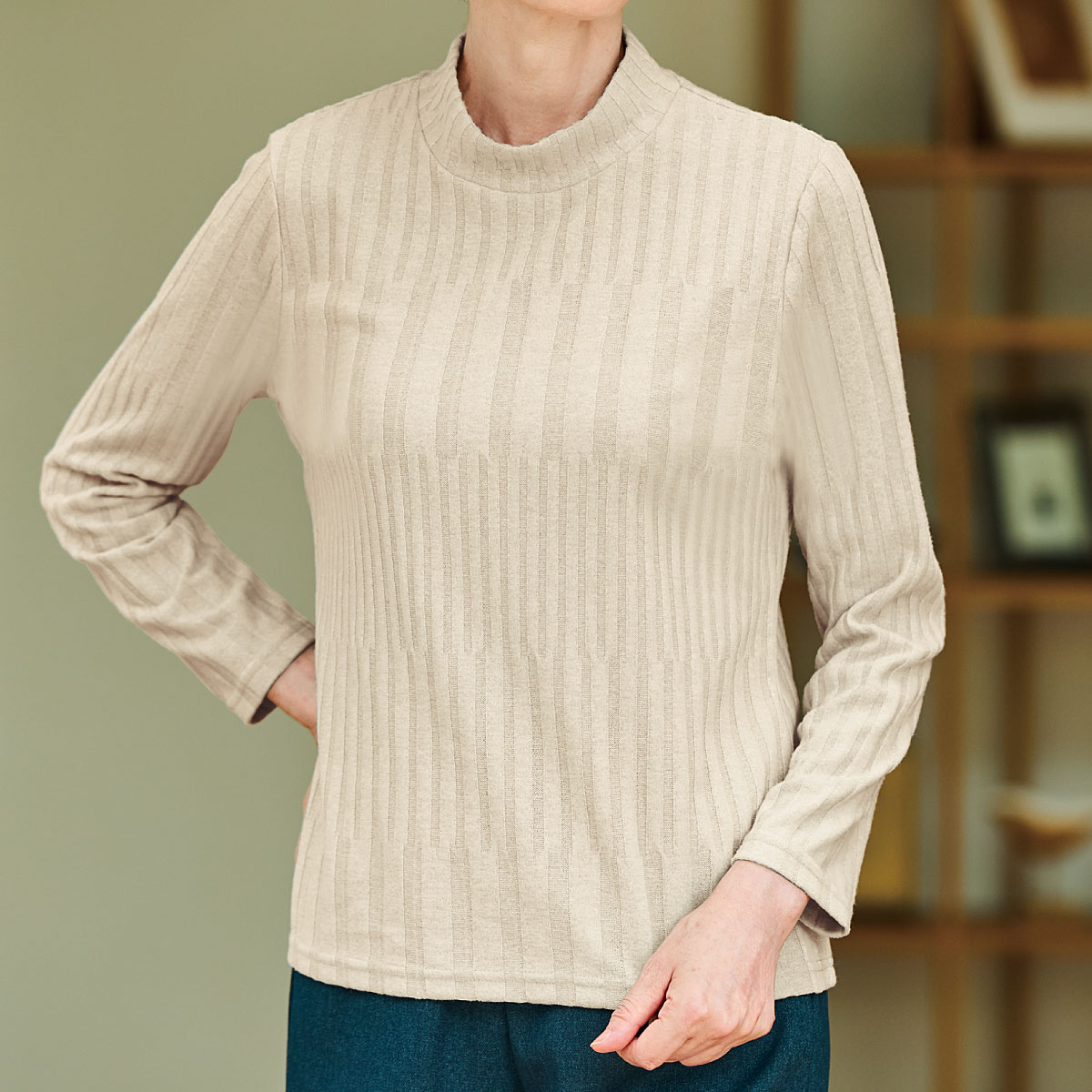 機能糸使用でまるでセーターのようなぬくもり!着ぶくれなしでソフトタッチのじんわりあったかトップス(日本製)