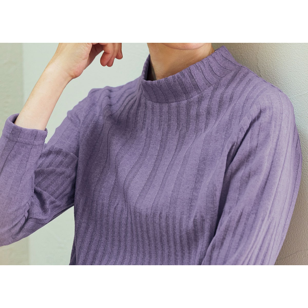顔映りが良くなる発色と豊富な6色展開が人気!ふわっと軽い着心地ながら1枚であたたかい保温素材のプルオーバー。―デザイン―変化をつけたリブ編みがおしゃれな表情。柄の効果で細見えします。―素材特徴―伸縮性と保温性を備えた、軽く着心地のよい東レのあたたか素材「エアロモア」を使用。