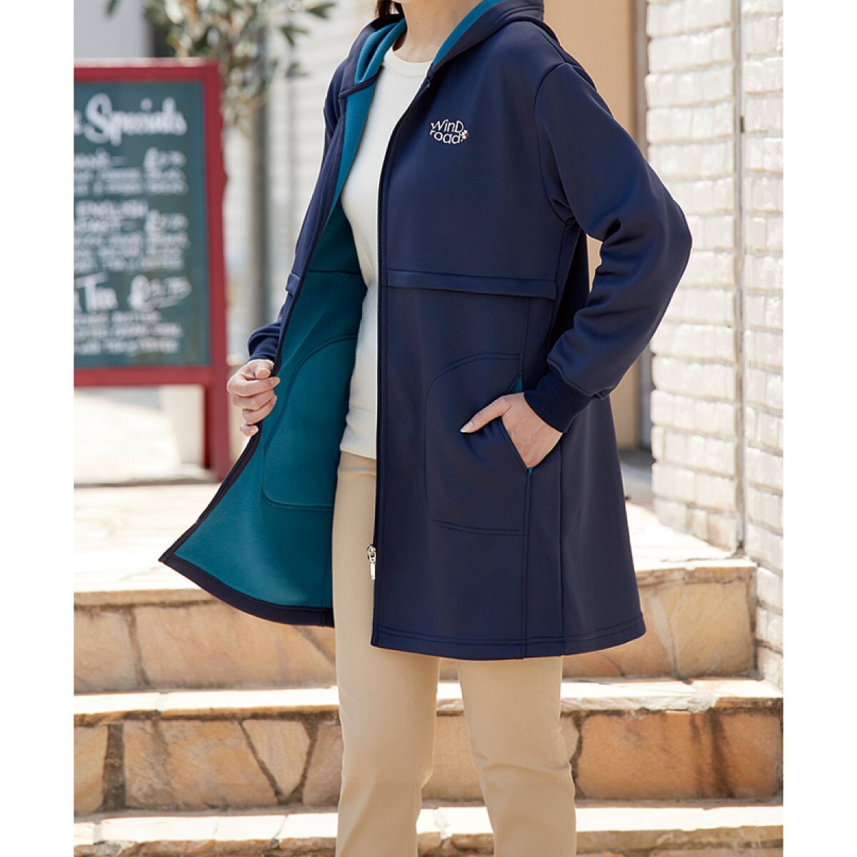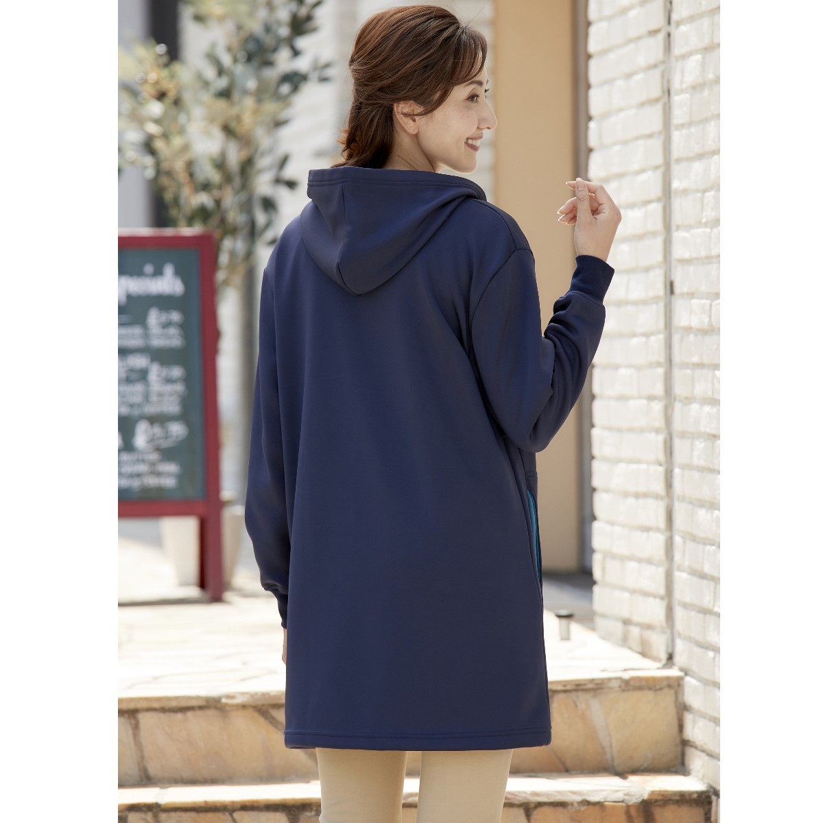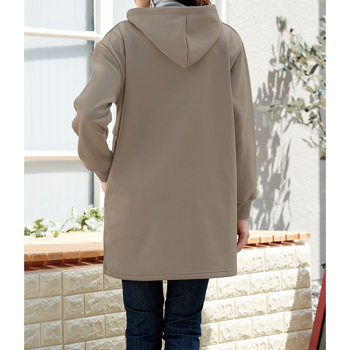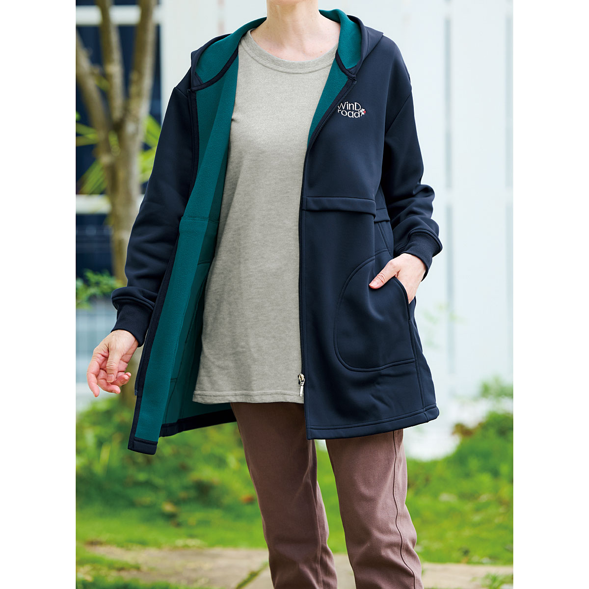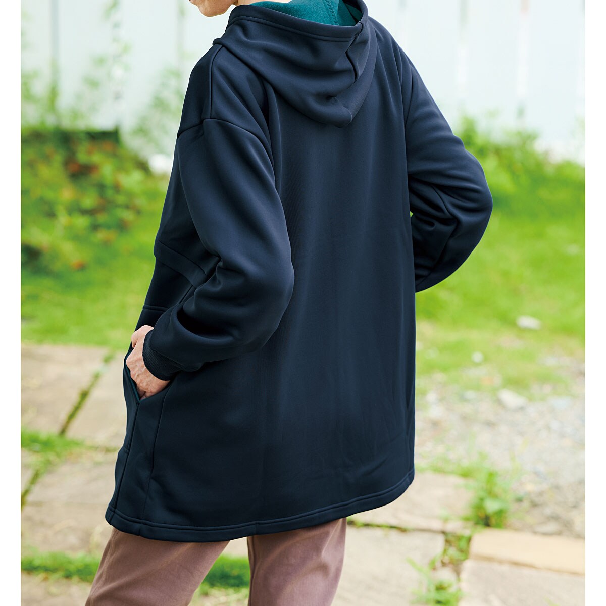 裏フリースストレッチロングパーカー