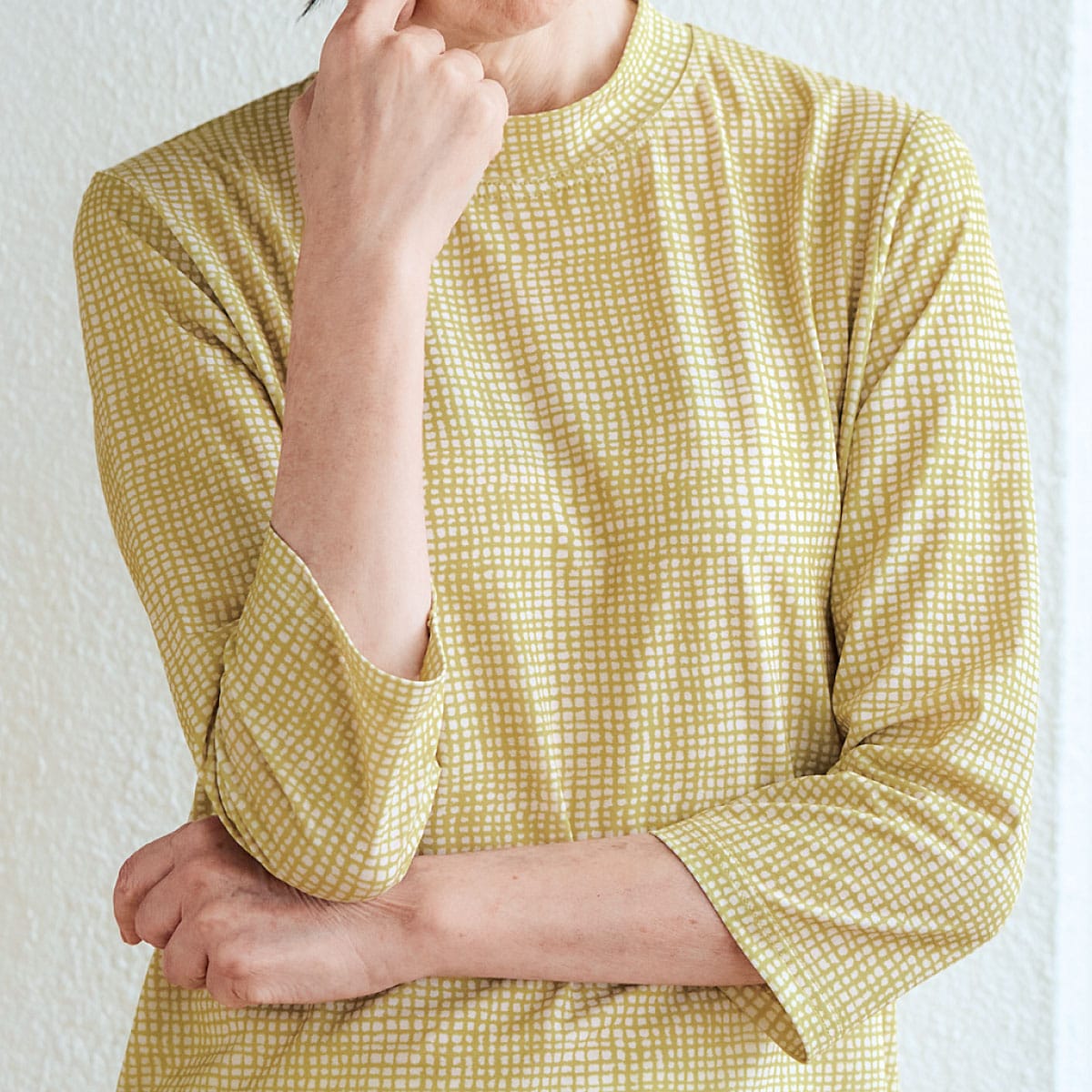 タテヨコストレッチのカットソー素材でラクな着心地。
