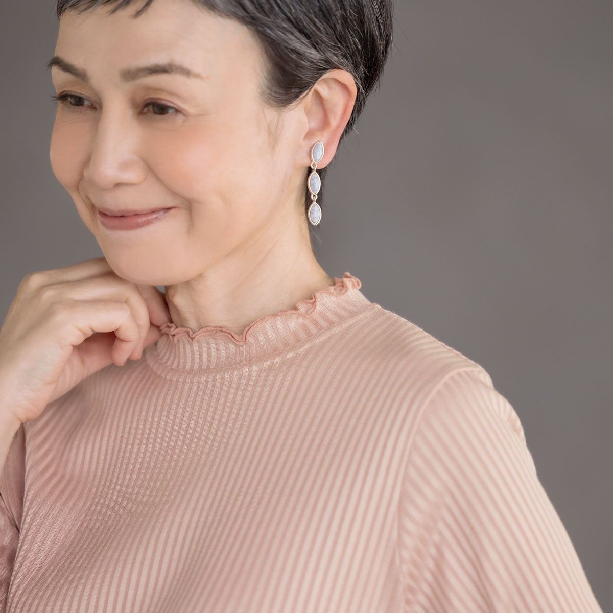 サーモンピンクシルクのような艶感で華やぎをプラス
