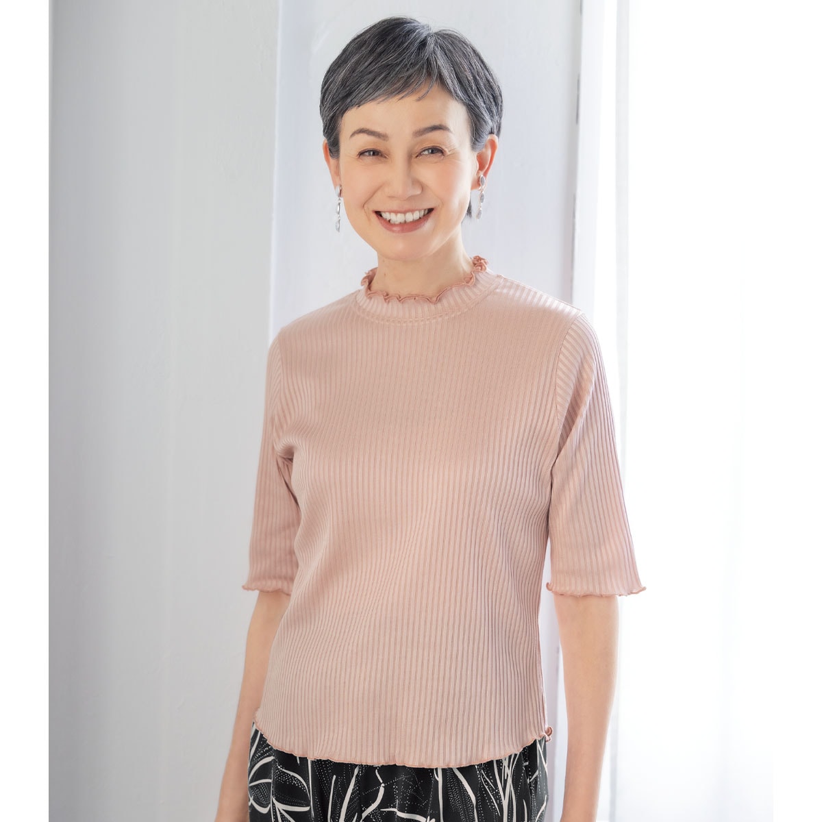 【累計販売数70,000枚突破】※2017年9月~2025年12月(メーカー調べ)上品な光沢感がお顔まわりを明るく見せるプルオーバー。ーデザインー縁をメロー仕上げにし、さらにハイネックを二重仕立てにすることで華やぎアップ。五分袖デザインが二の腕をカバーしながら、すっきり見せてくれます。ー素材特性ーしなやかで伸縮性がある東レのシルック®素材は、上品な光沢感が持ち味。