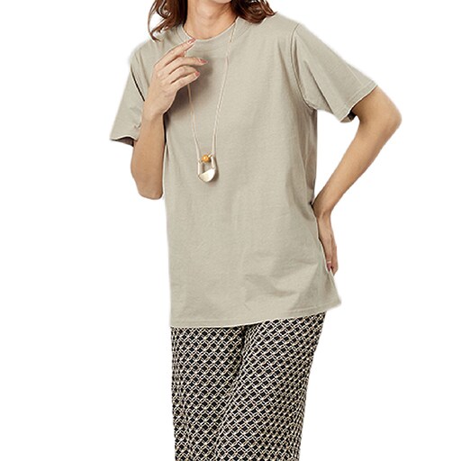 おしりが隠れるやや長めの丈で体型カバー。ー素材特性ー洗っても型崩れしにくい素材。糸を「S撚り」と「Z撚り」を互い違いにすることで、型崩れしにくくなります。【UVカット率 約90%】